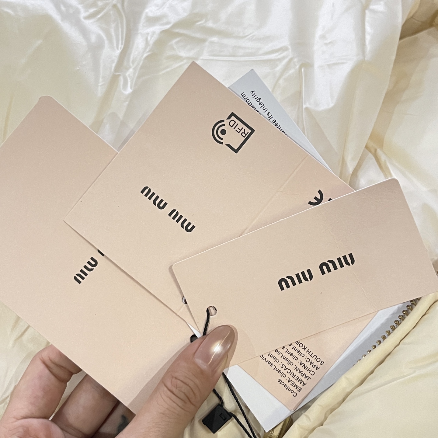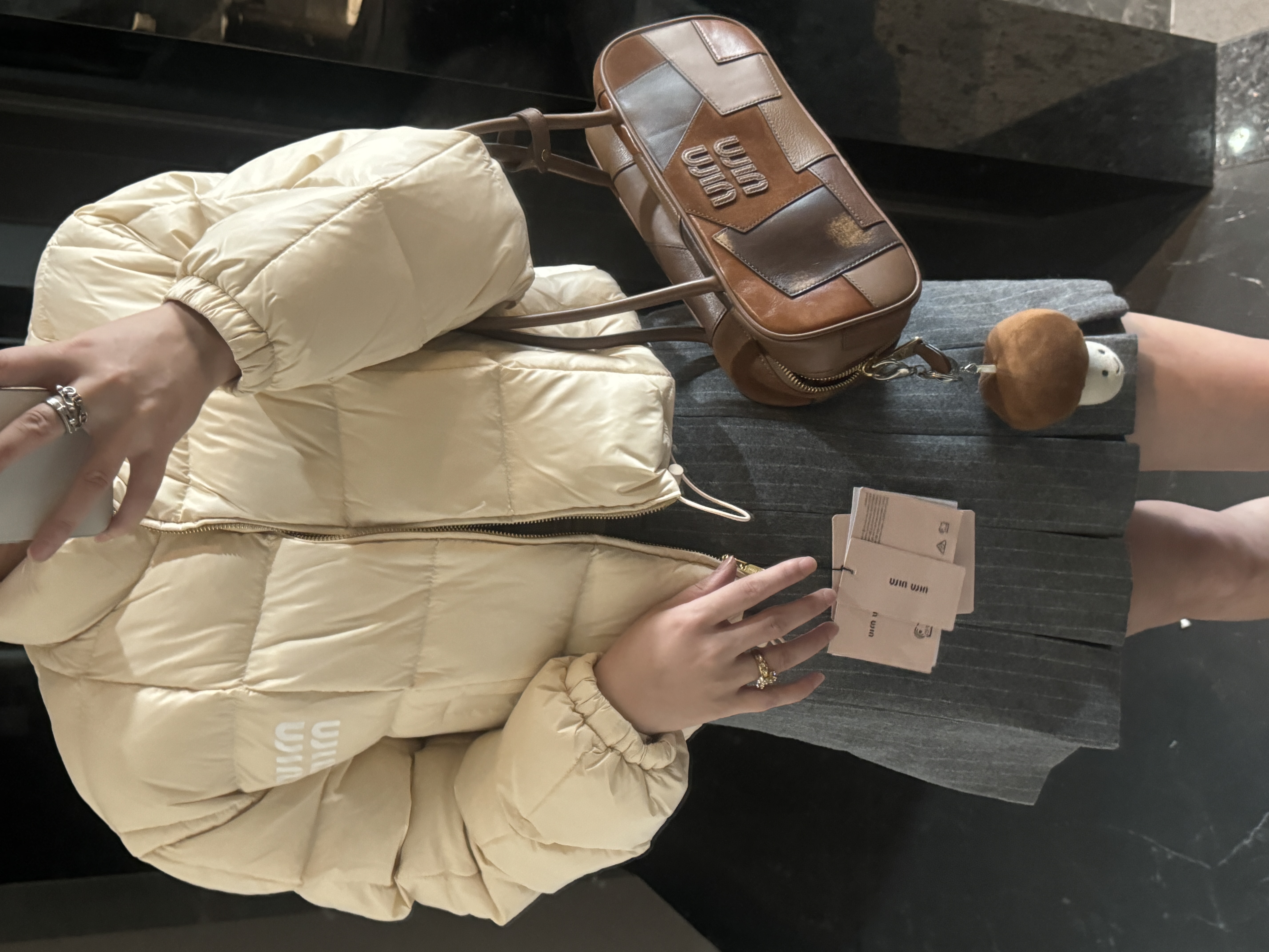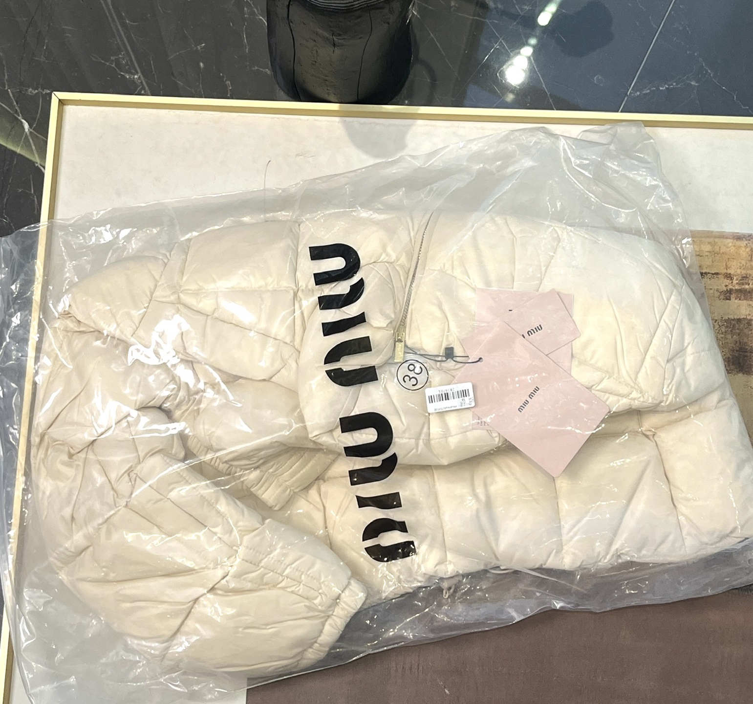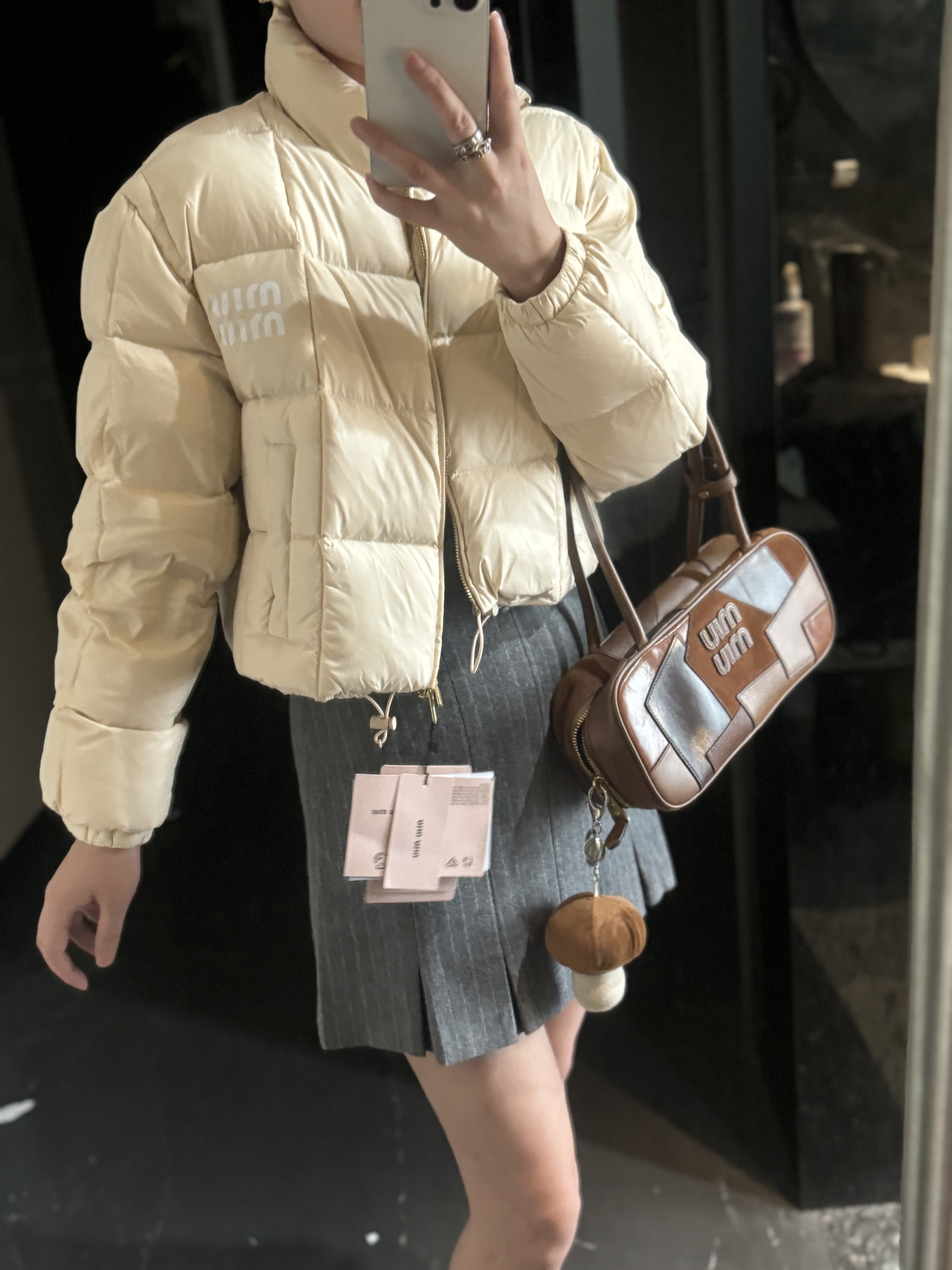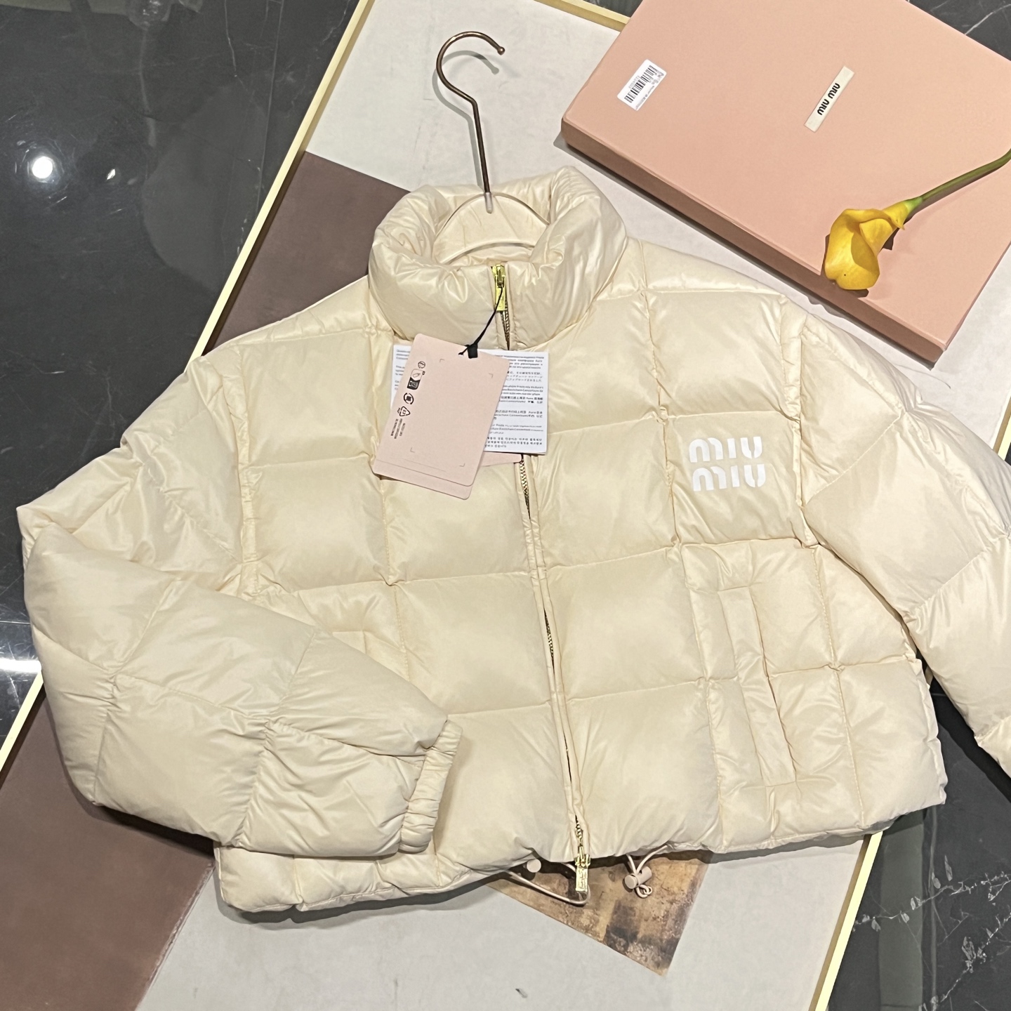 现货在仓秒发✈️ 秒完无补‼️ !【缪家 FW22 限定款亮面鹅绒服】冬日奢暖,高光登场!✨ 90%白鹅绒奢暖内核 | 再生环保面料 | AURA区块链认证正品✨🔸「核心优势」 1️⃣ 顶级绒芯:90%绒子含量白鹅绒填充,轻盈蓬松锁住体温,零下严寒依旧温暖如春 2️⃣ 环保科技:100%再生锦纶面料+再生聚酯纤维内胆,高端时尚与可持续理念完美融合 3️⃣ 精致细节:24K金质感拉链刻印经典缪家标识,立领防风设计,可调节下摆抽绳,方形绗缝工艺勾勒优雅轮廓 4️⃣ 权威认证:AURA区块链技术溯源 🎁得物原价12545元,现售价8789元!⚠️抢到赚到 → 米白亮面材质折射高级光泽。短款版型搭配高腰下装尽显大长腿。左胸经典品牌标识彰显低调奢华 配套RFID身份卡+多国语言认证卡 通勤约会|滑雪度假|圣诞元旦|派对聚会 冬日衣橱C位非它莫属,MIUMIU女孩的温暖高光时刻就此开启! 缪家鹅绒服 小个子女孩的救命🆘福星!蕾姐38码参考⚠️38码110斤以内⚠️ 40吗130斤以内⚠️