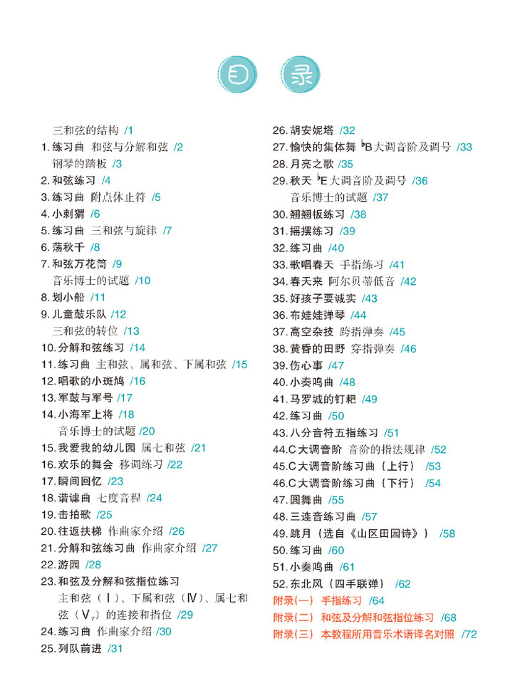 这是一套具有典型民族音乐特点并适合我国儿童学习的教学体系成熟的儿童钢琴启蒙教程,由我国著名钢琴教育家谢耿教授于20世纪90年代在人民音乐出版社出版发行,并在近30年的教学实践中得到广大琴童及钢琴教师们的认可和喜爱。这次的修订版有以下几大特色:1.丰富多样的练习曲目——从教学曲目上着手,在原有的基础上从乐曲类型、音乐年代、代表性作曲家、弹奏技术这四大方面上大幅度扩充了曲目量;2.有趣的曲目定位——所选曲目为适合少儿特点的轻松活泼、抒情优美的中外儿歌、民歌及具有民族特色的各类小曲和练习曲;3.科学有效的钢琴学习体系——在曲目的学习中添加了必要的教学提示、乐理知识、曲式知识和作曲家介绍。