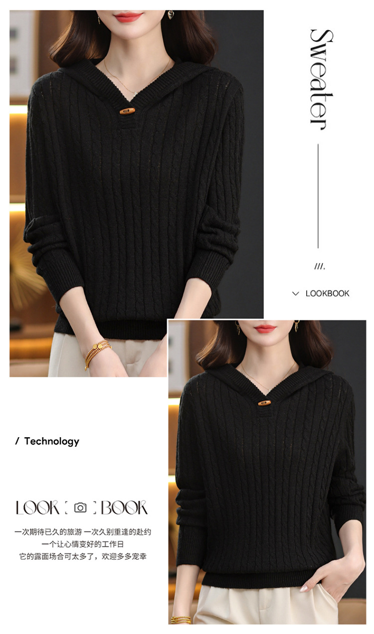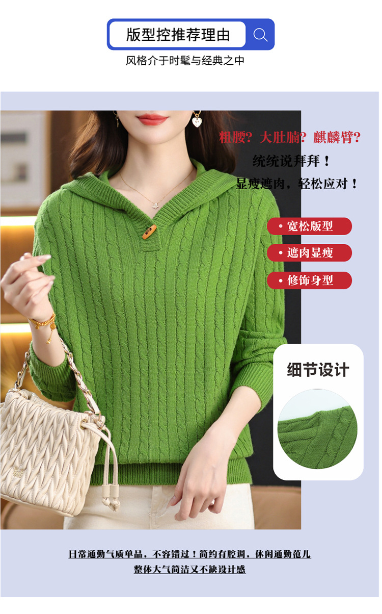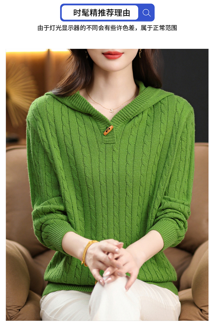 FCY  92173麻花毛衣连帽复古慵懒宽松软糯针织衫 商品图2