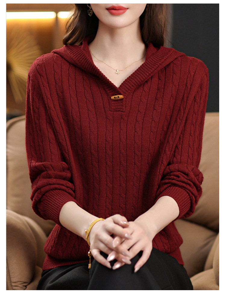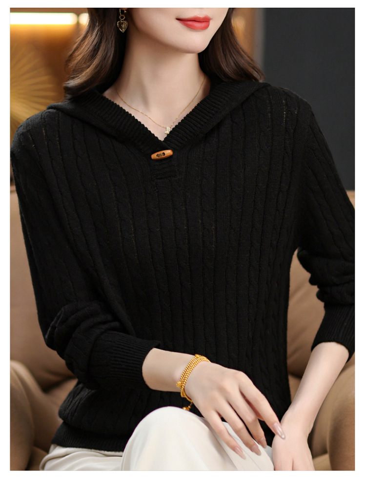 FCY  92173麻花毛衣连帽复古慵懒宽松软糯针织衫 商品图1