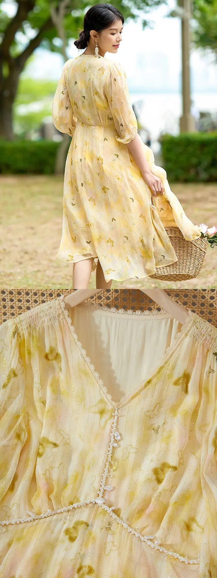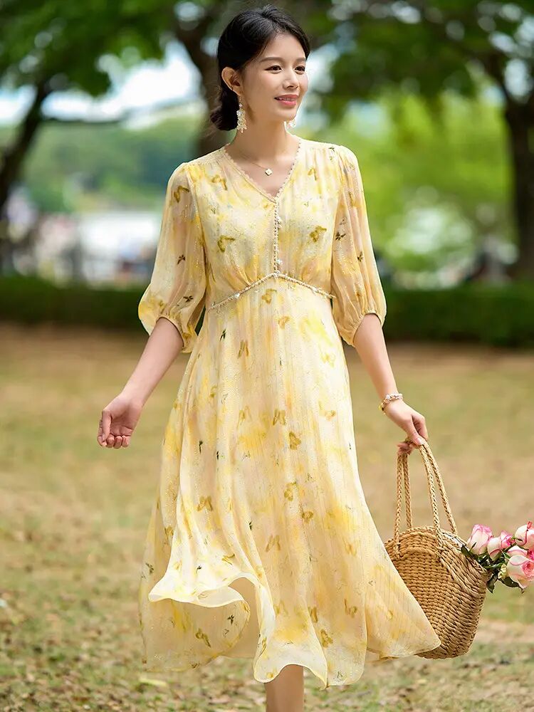 【自】全新升级【铂金会员661/天猫899/差价238】(94819) 洛诗琳2025夏季新款重工收腰优雅高端桑蚕丝连衣裙女