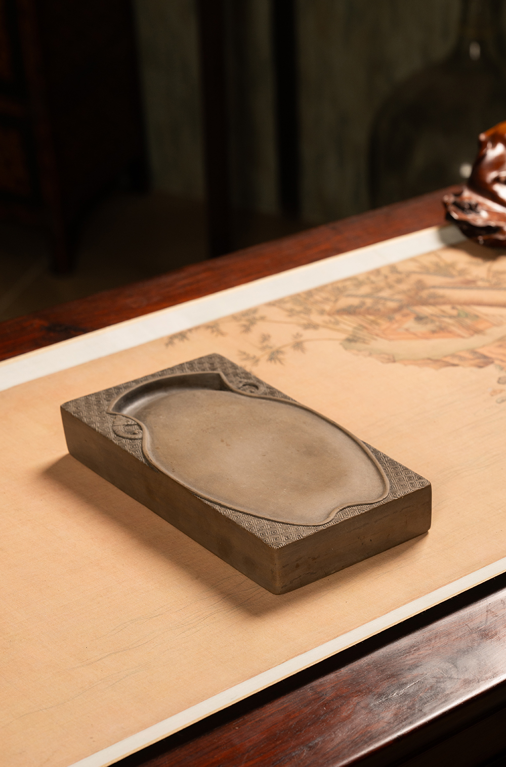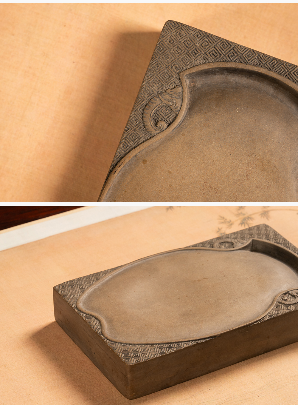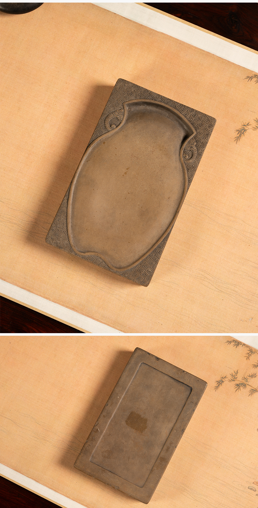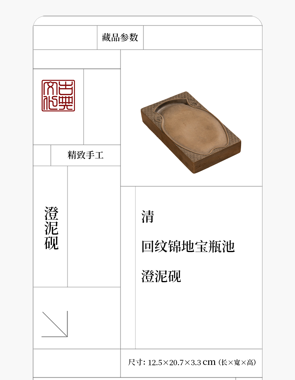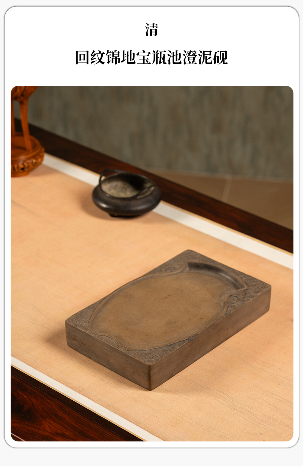 清 回纹锦地宝瓶池澄泥砚