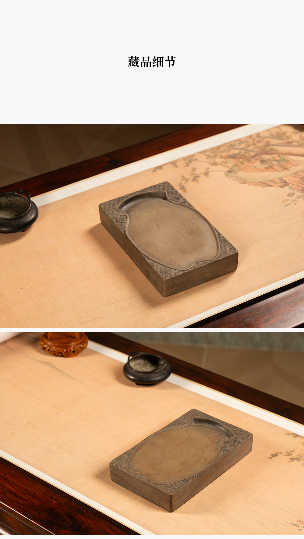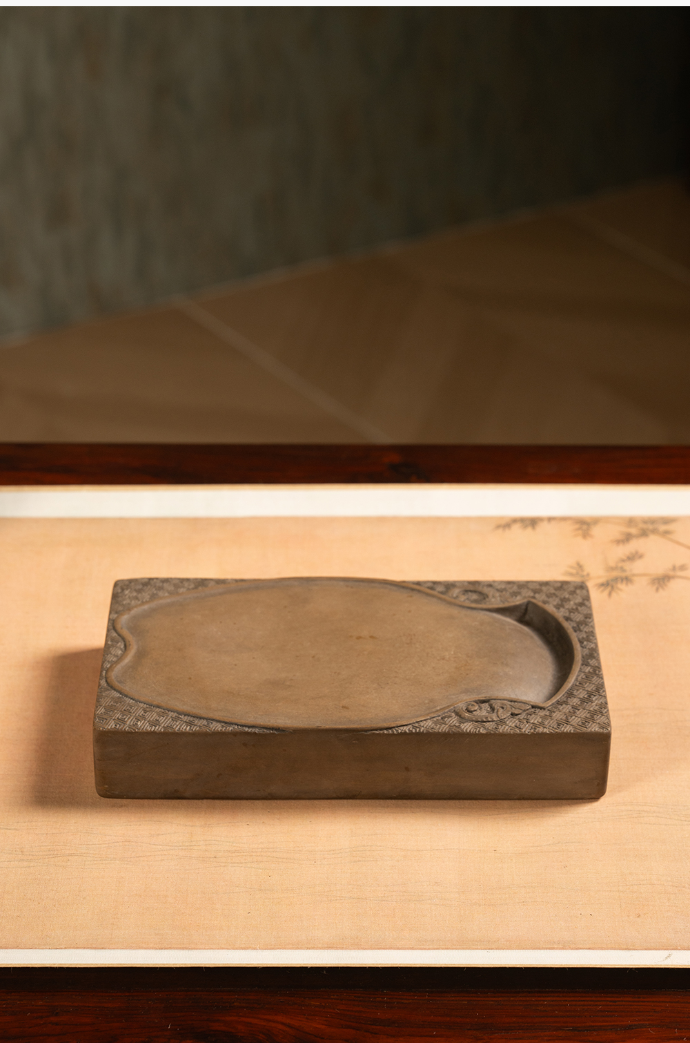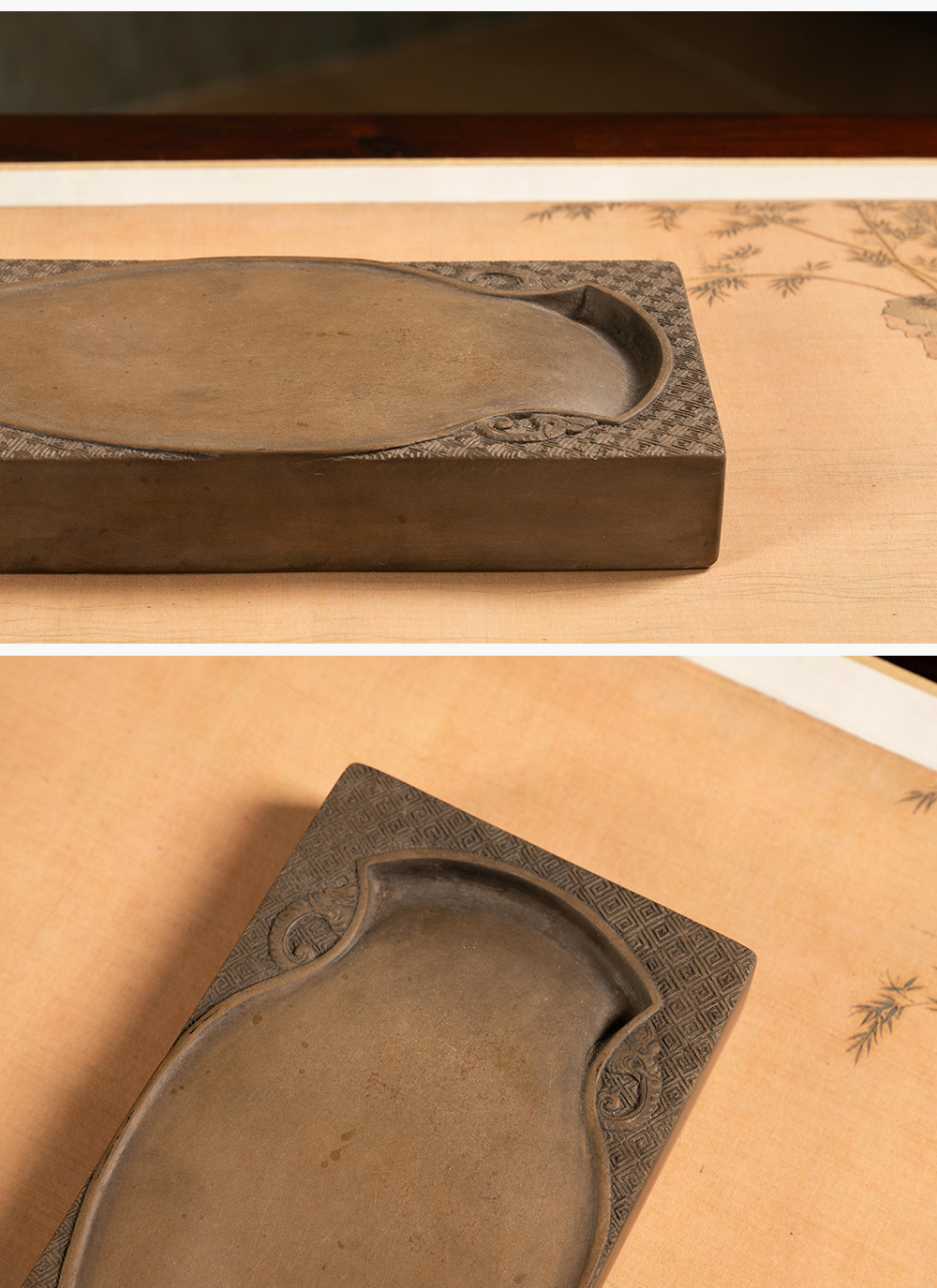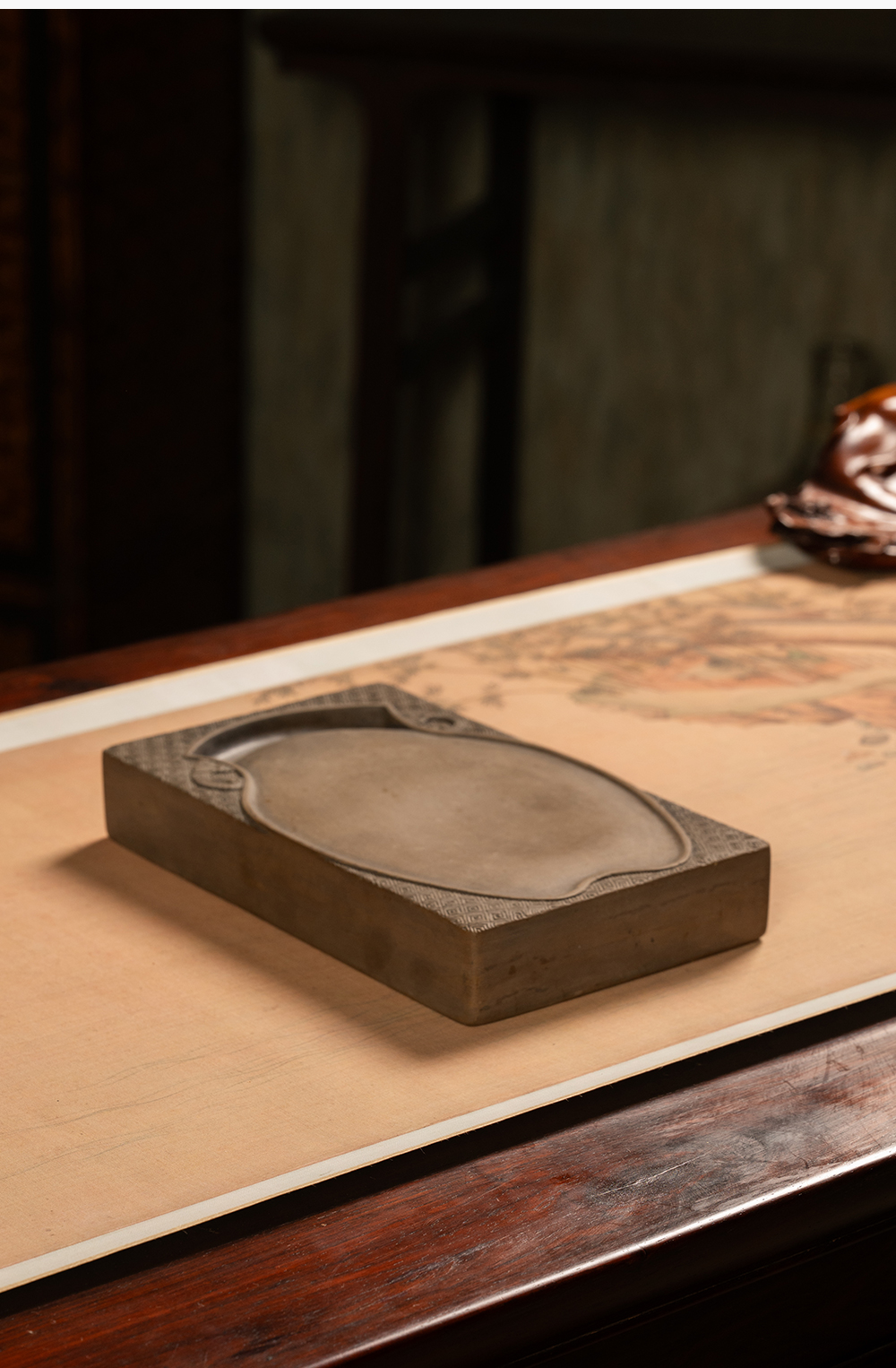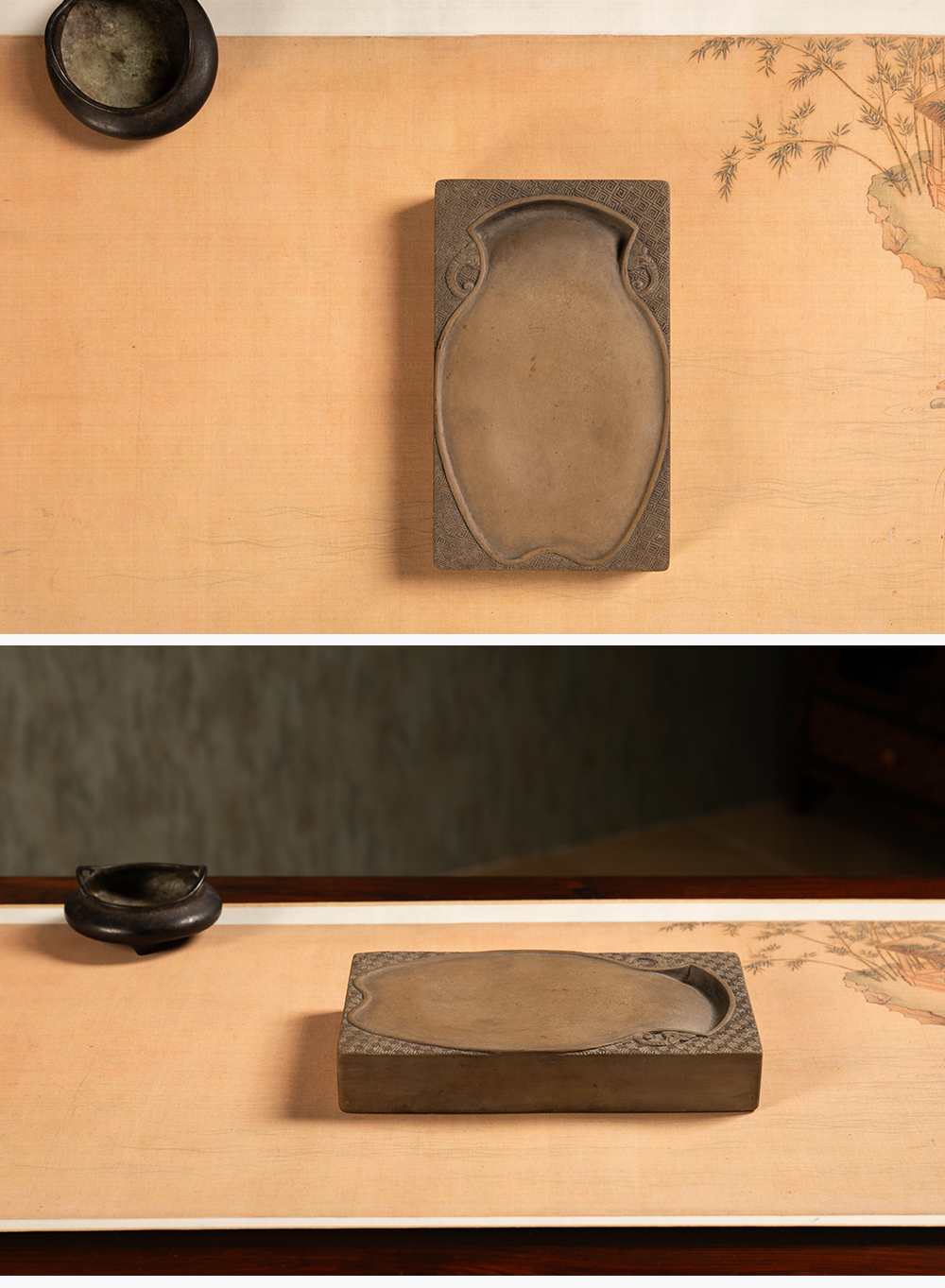 清 回纹锦地宝瓶池澄泥砚