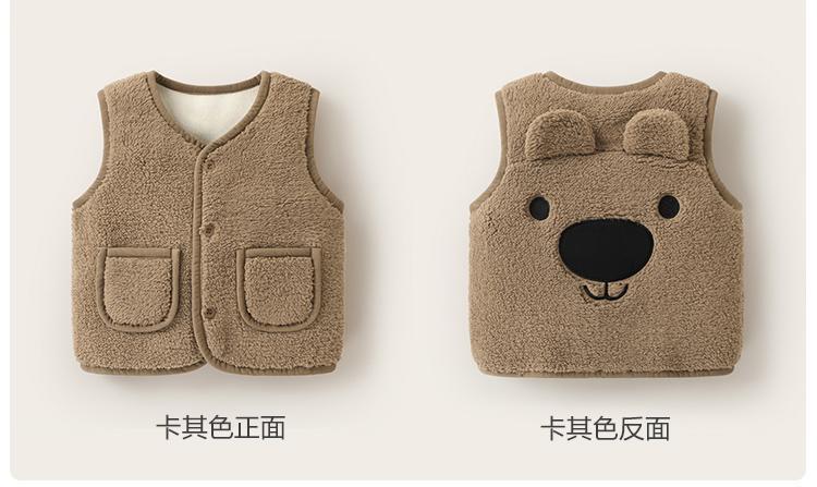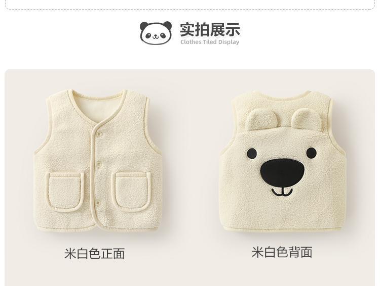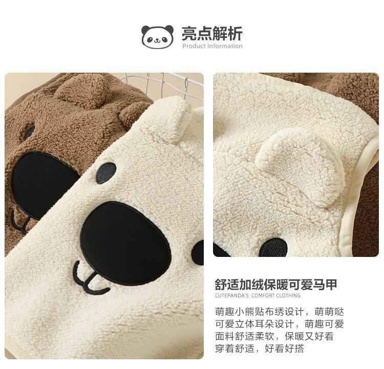 【萌趣小熊贴布绣设计,萌萌哒!】婴儿休闲加绒马甲秋冬新款,男童女宝宝加绒加厚背心冬装儿童马夹,穿着舒适,好看好搭!