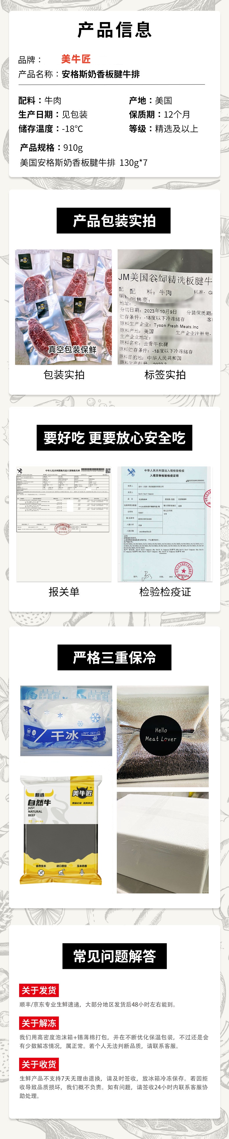 【口粮必备】原切美国安格斯谷饲板腱牛排 买6赠1共7片 910g 西餐套餐美食牛扒