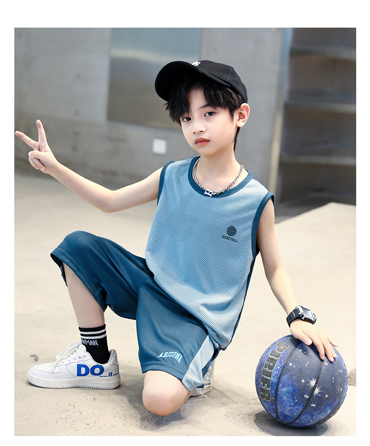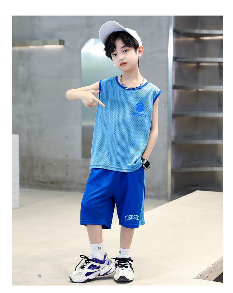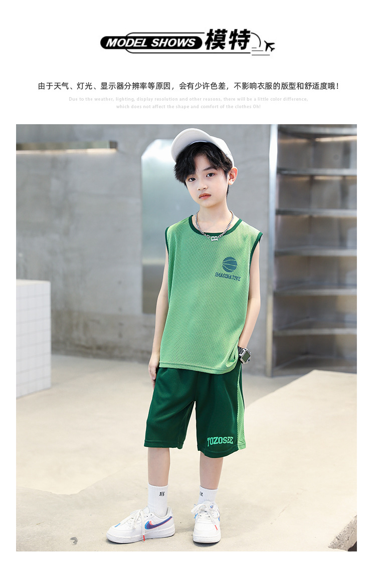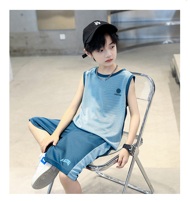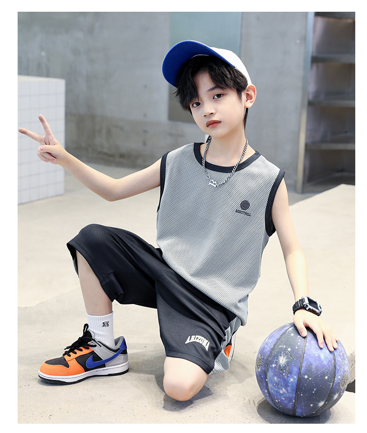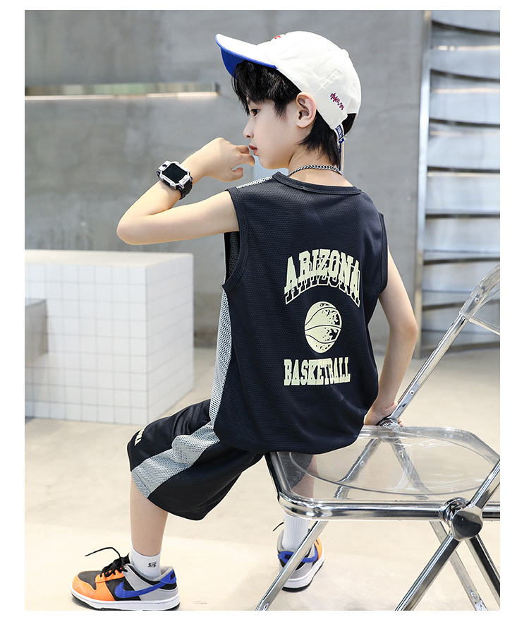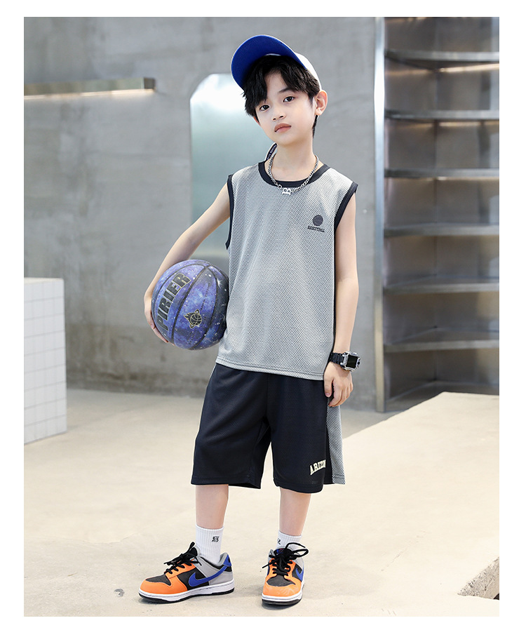 【潮流洋气!运动篮球服套装】新款男童夏装套装,儿童网眼运动篮球服,中大童背心洋气速干训练球衣潮li