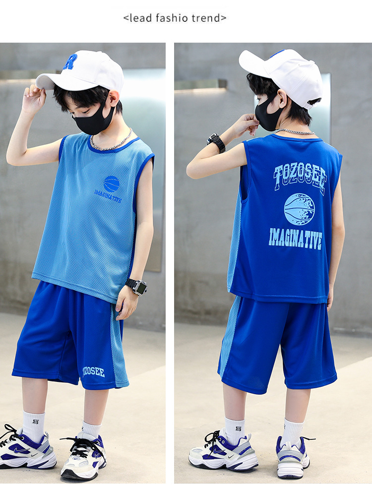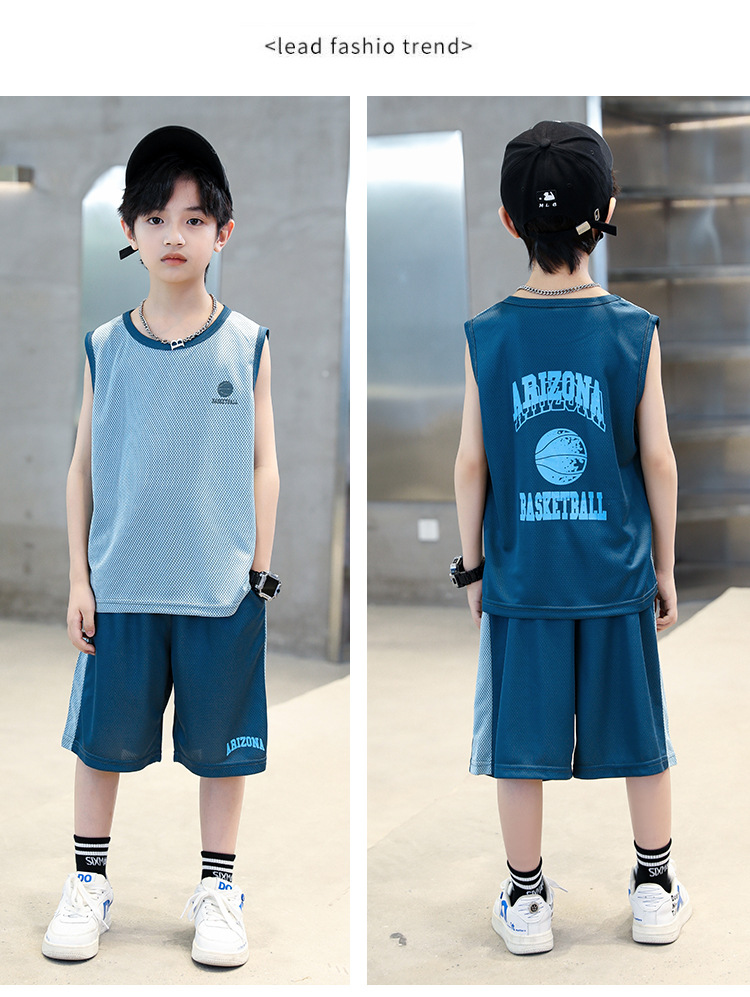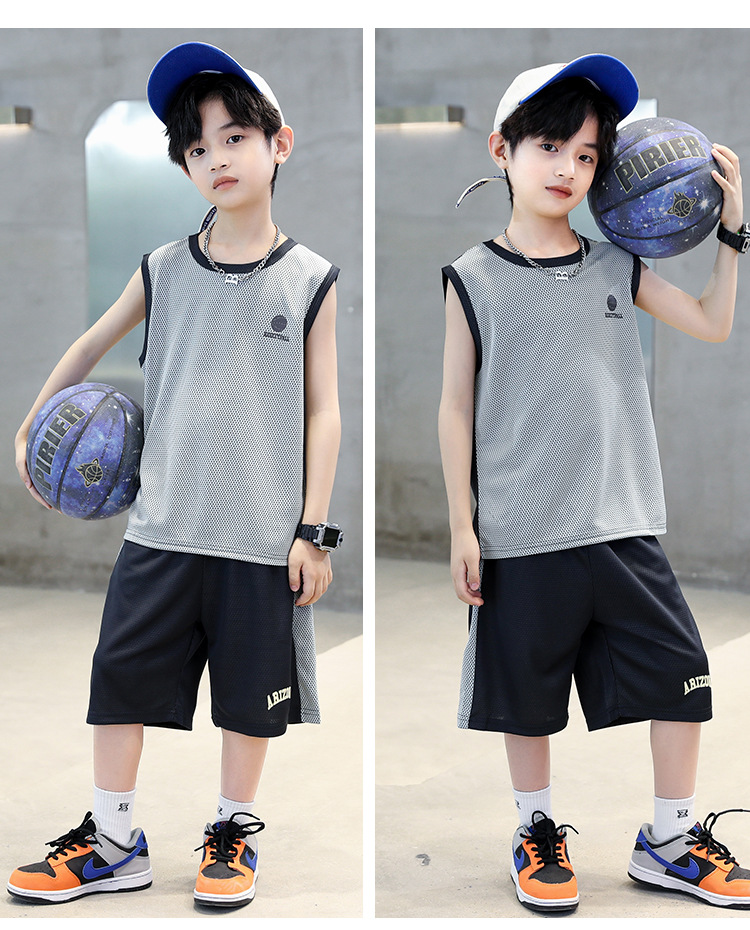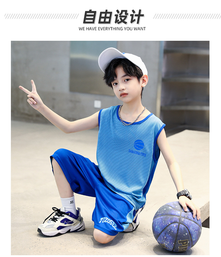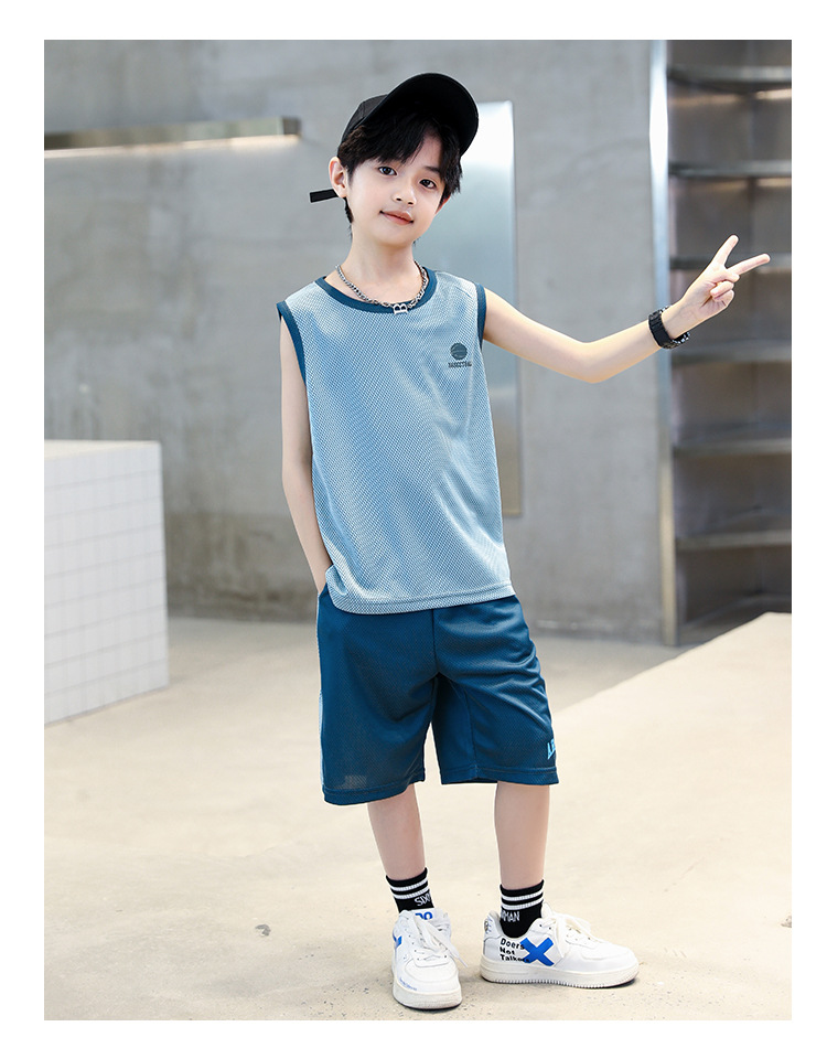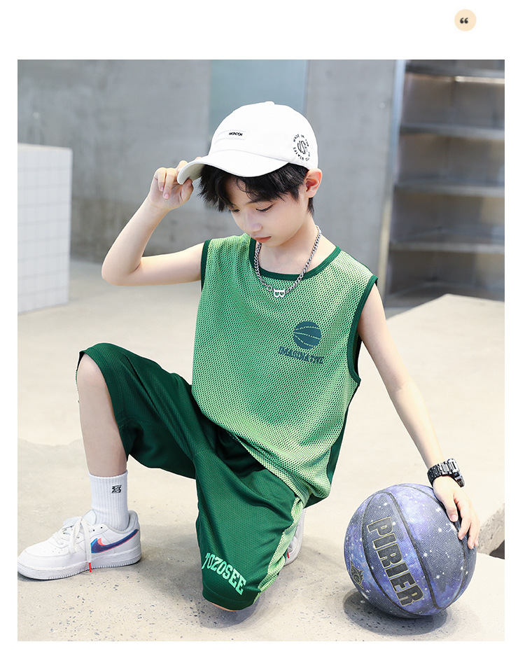 【潮流洋气!运动篮球服套装】新款男童夏装套装,儿童网眼运动篮球服,中大童背心洋气速干训练球衣潮li