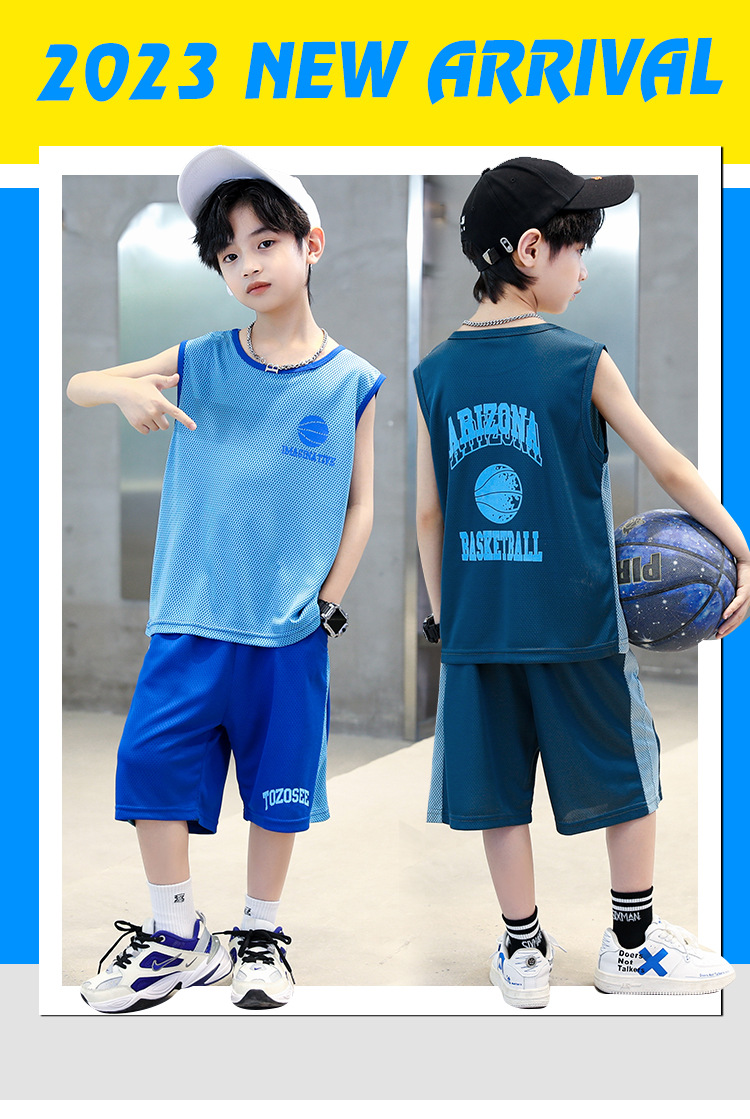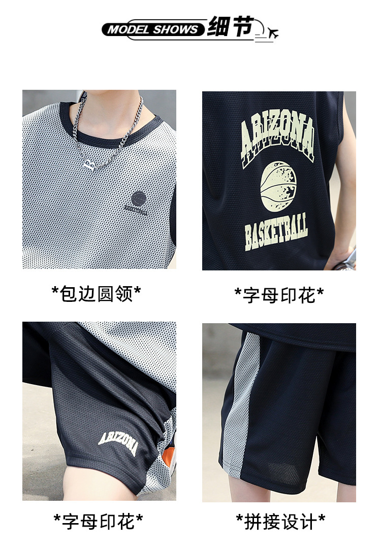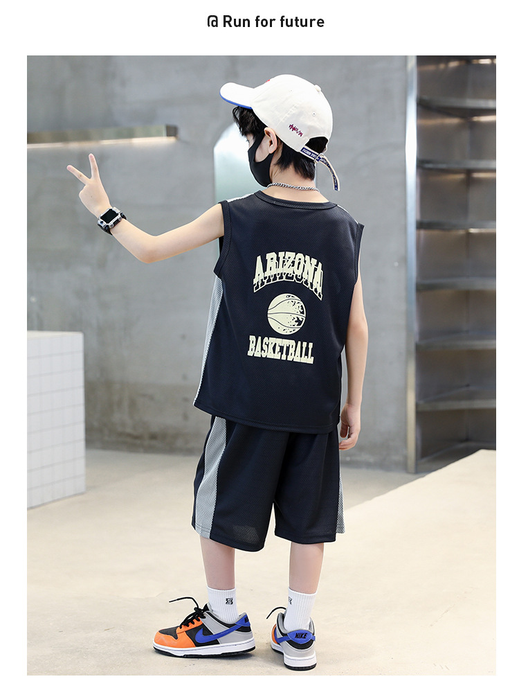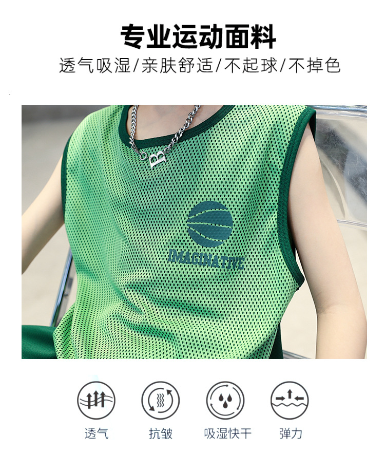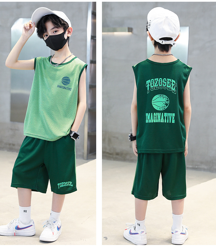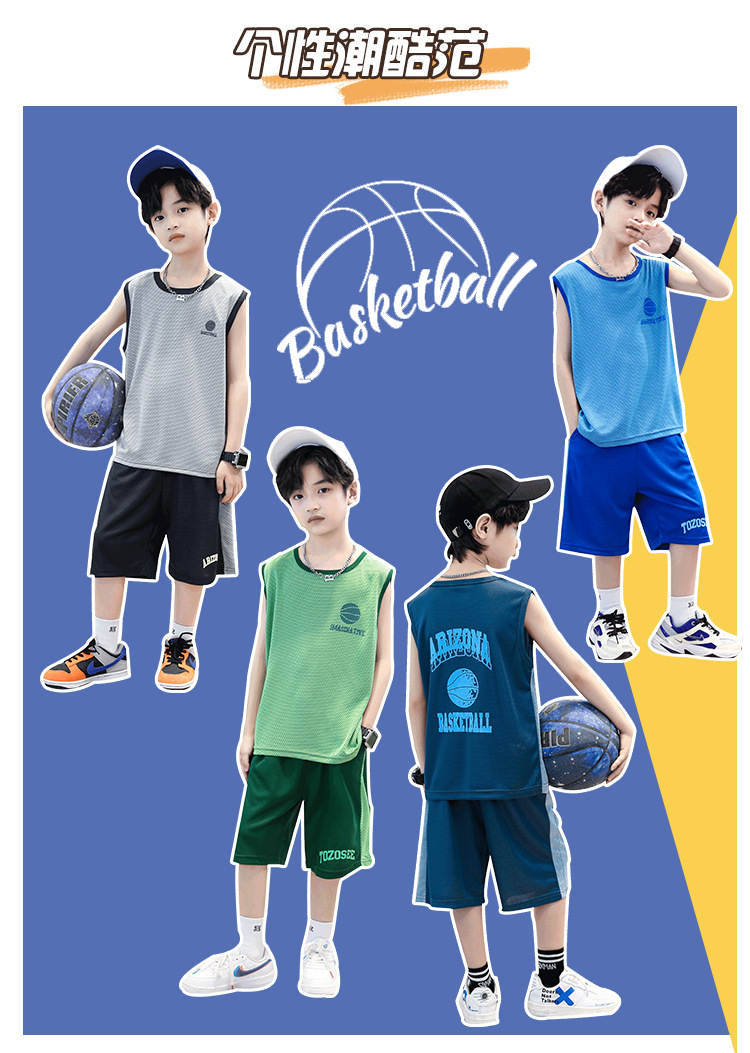 【潮流洋气!运动篮球服套装】新款男童夏装套装,儿童网眼运动篮球服,中大童背心洋气速干训练球衣潮li