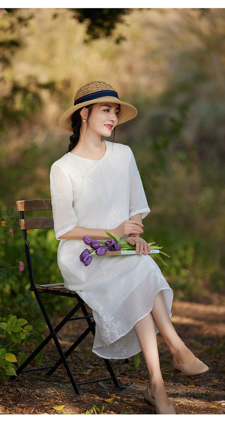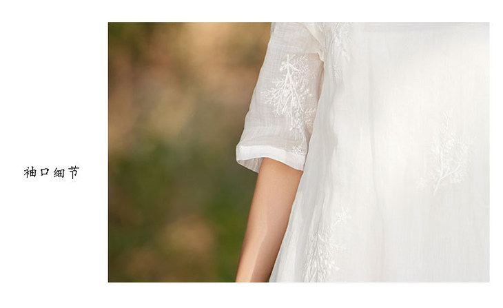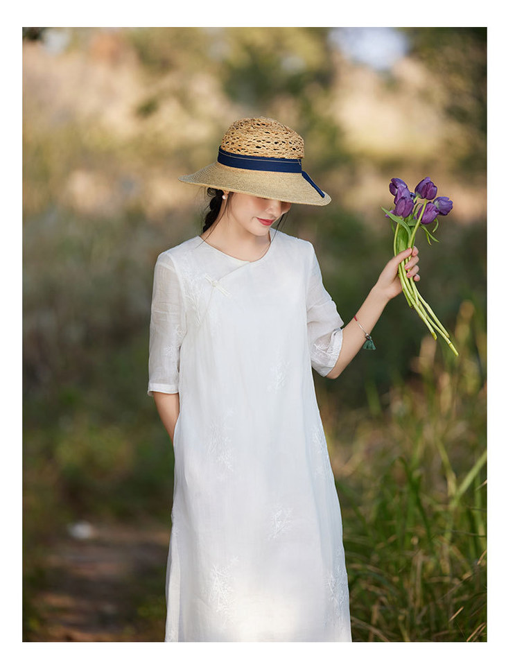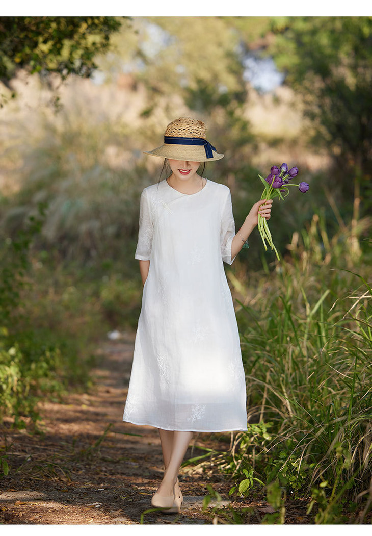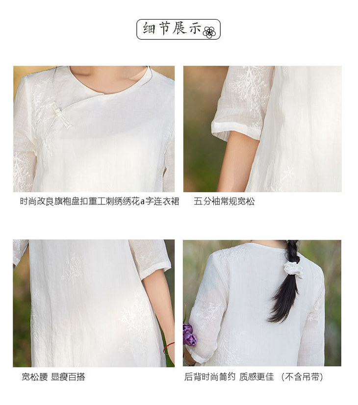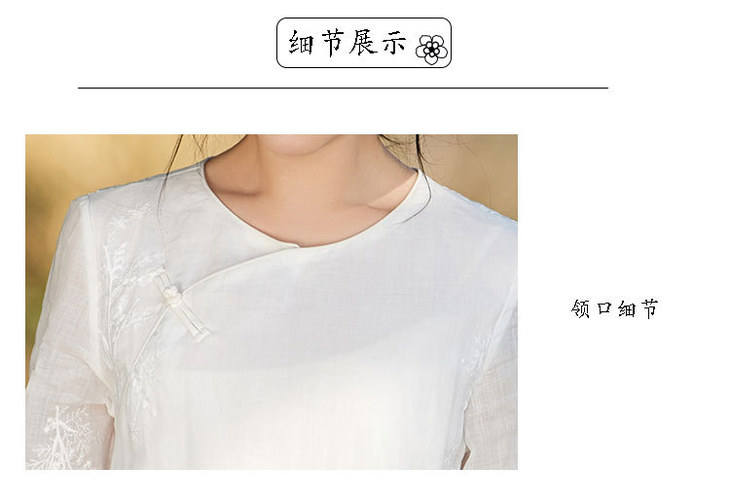 新中式苎麻连衣裙,改良旗袍圆领刺绣绣花国风a字裙TT-96308