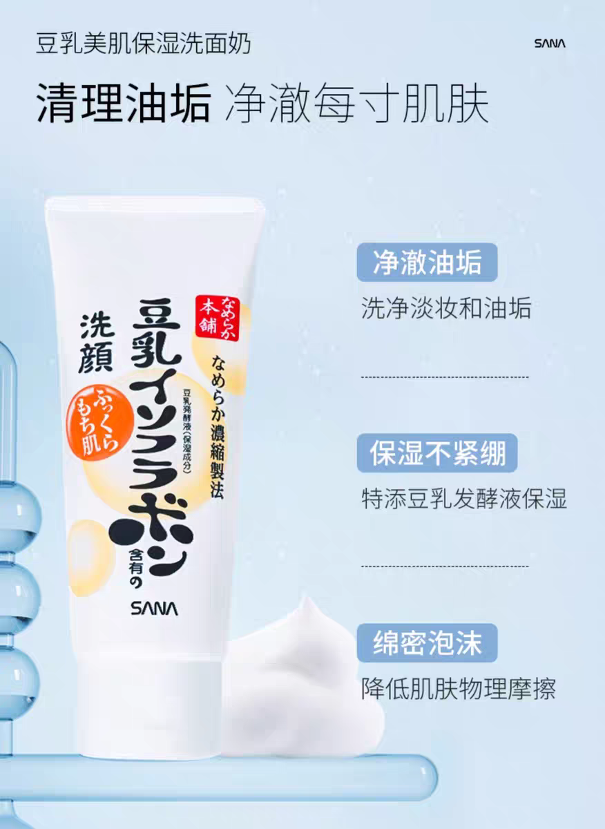 日本sana莎娜 豆乳洗面奶清洁卸妆不紧绷干皮油皮补水保湿洁面乳