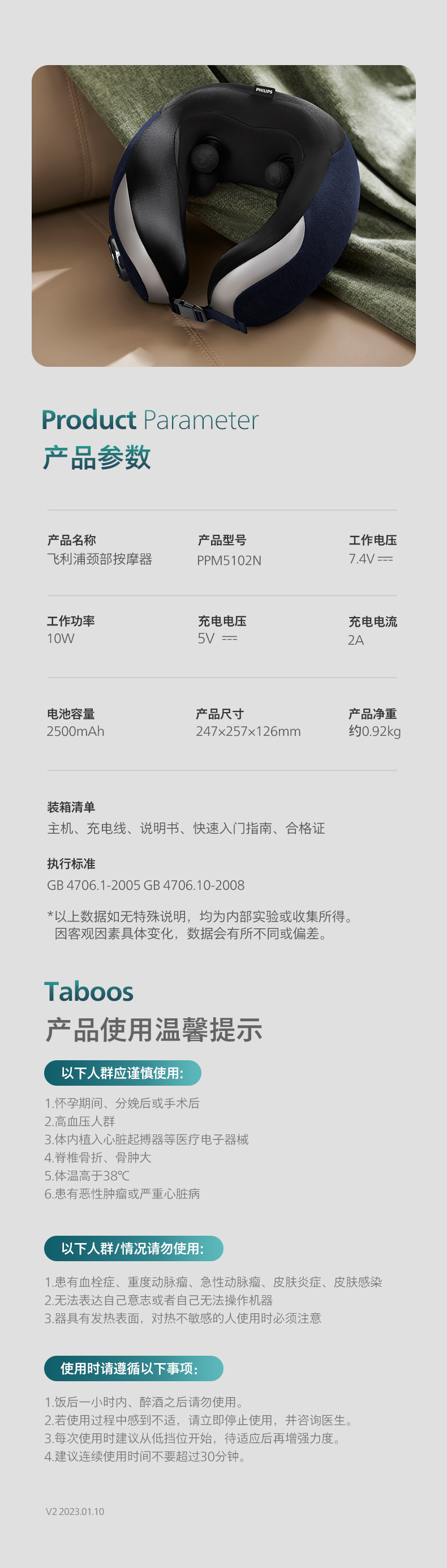 PHILIPS飞利浦U型肩颈按摩枕(PPM5102N)