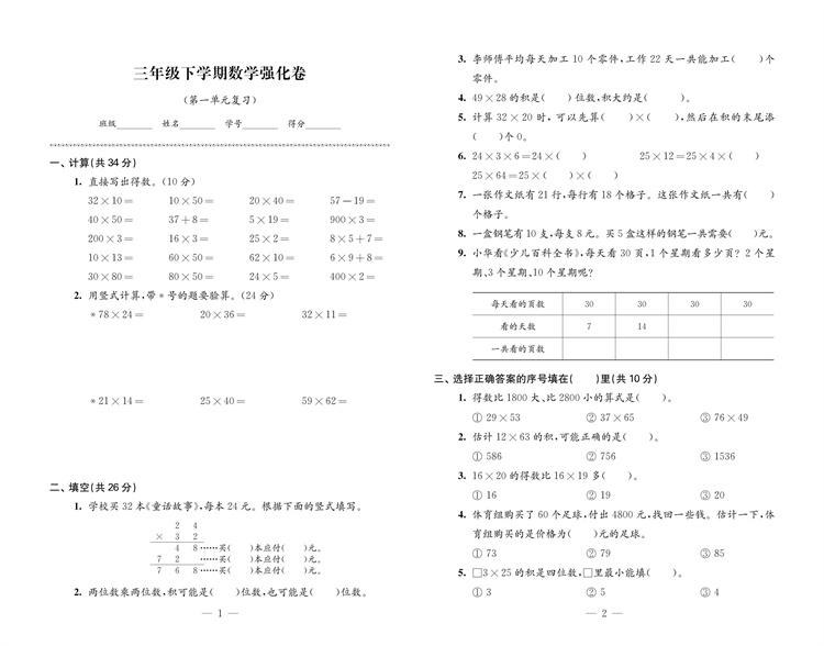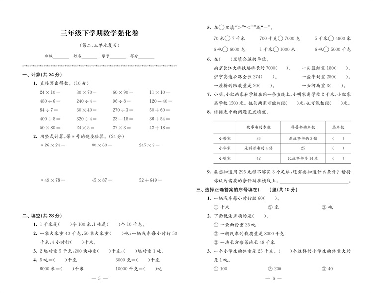 2025春 小学数学强化拓展卷 苏教版 三年级下册 提优版 扫码获取答案 3下 小学教辅 江苏凤凰教育出版社