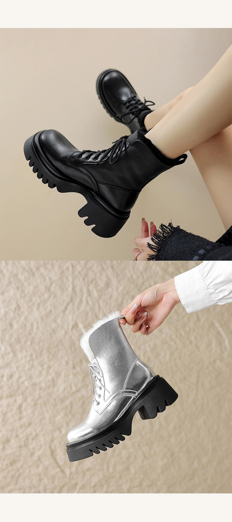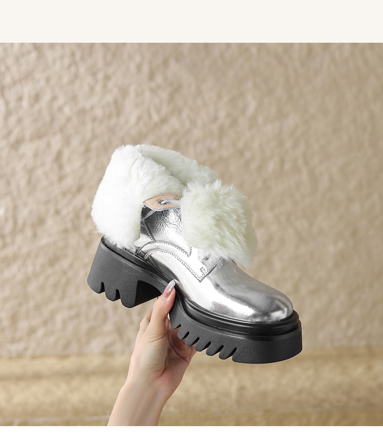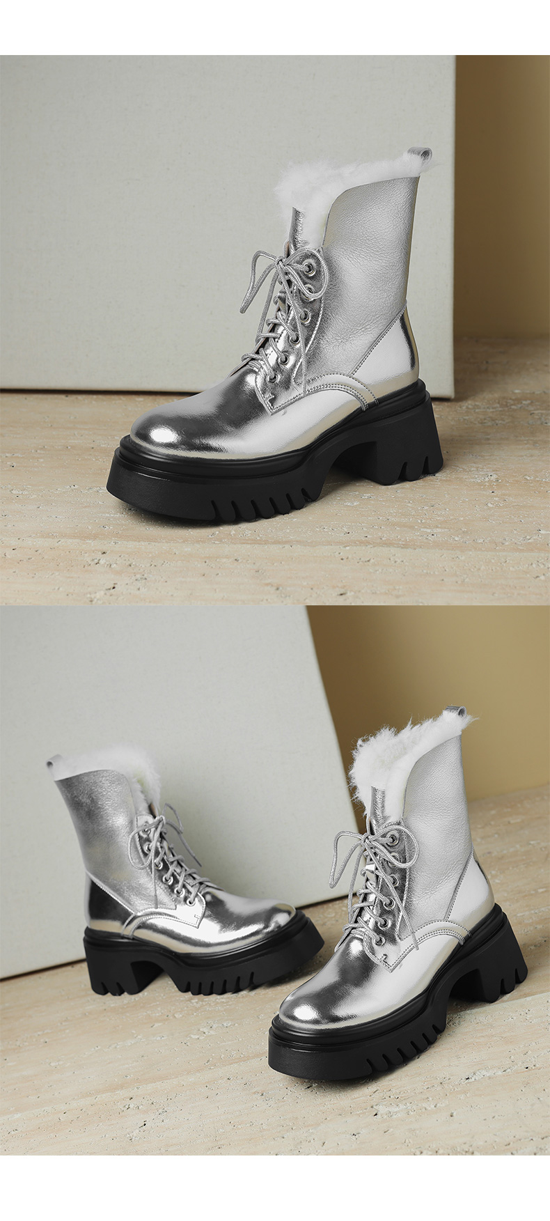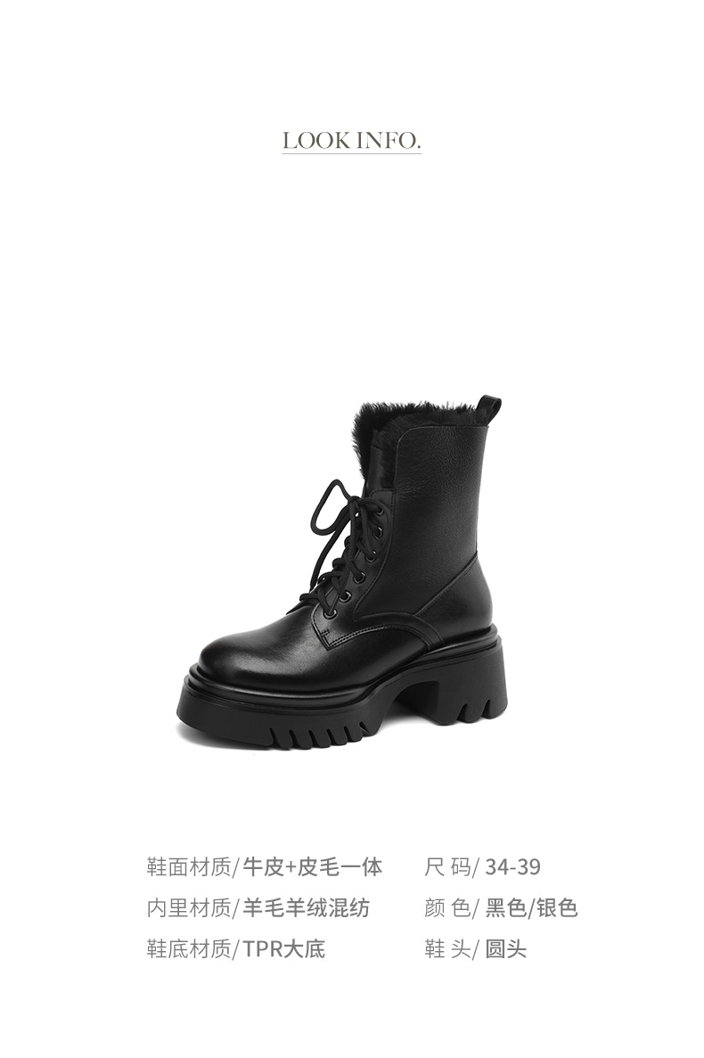 纯色百搭,牛皮+皮毛一体亮闪闪保暖雪地靴YMT690