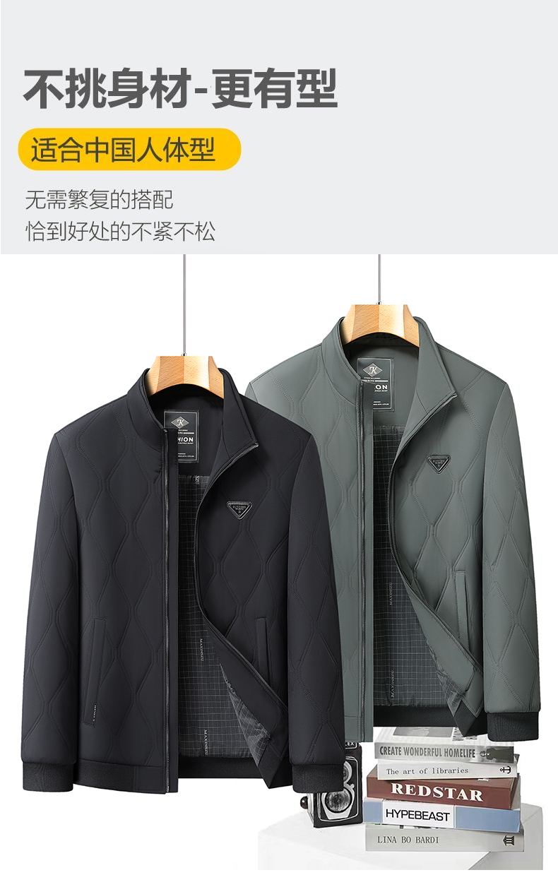 【DLC】大依优型大码男装秋冬季加棉夹克外套休闲领时尚百搭棉服