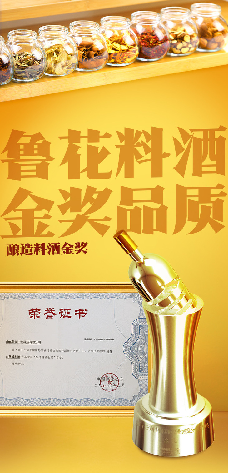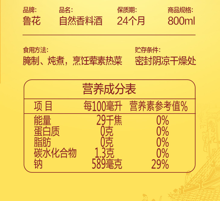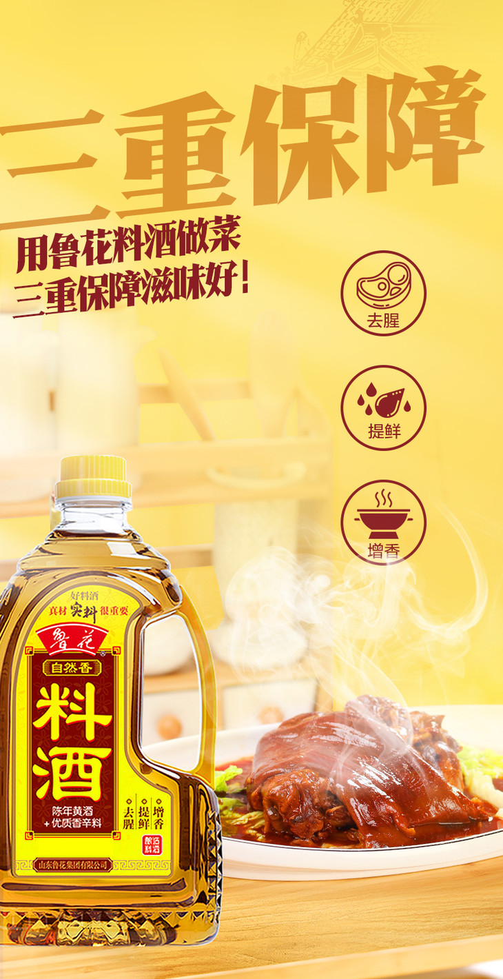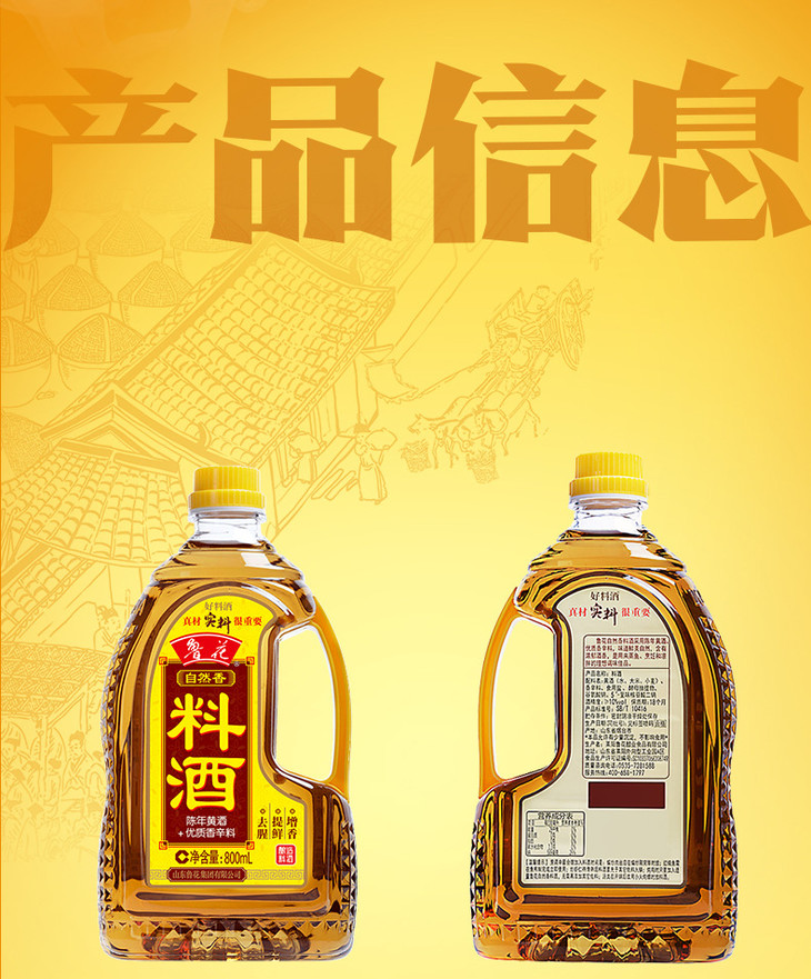 【官方直营】鲁花自然香料酒800m烹饪陈年黄酒酿造烹饪炒 菜调味品