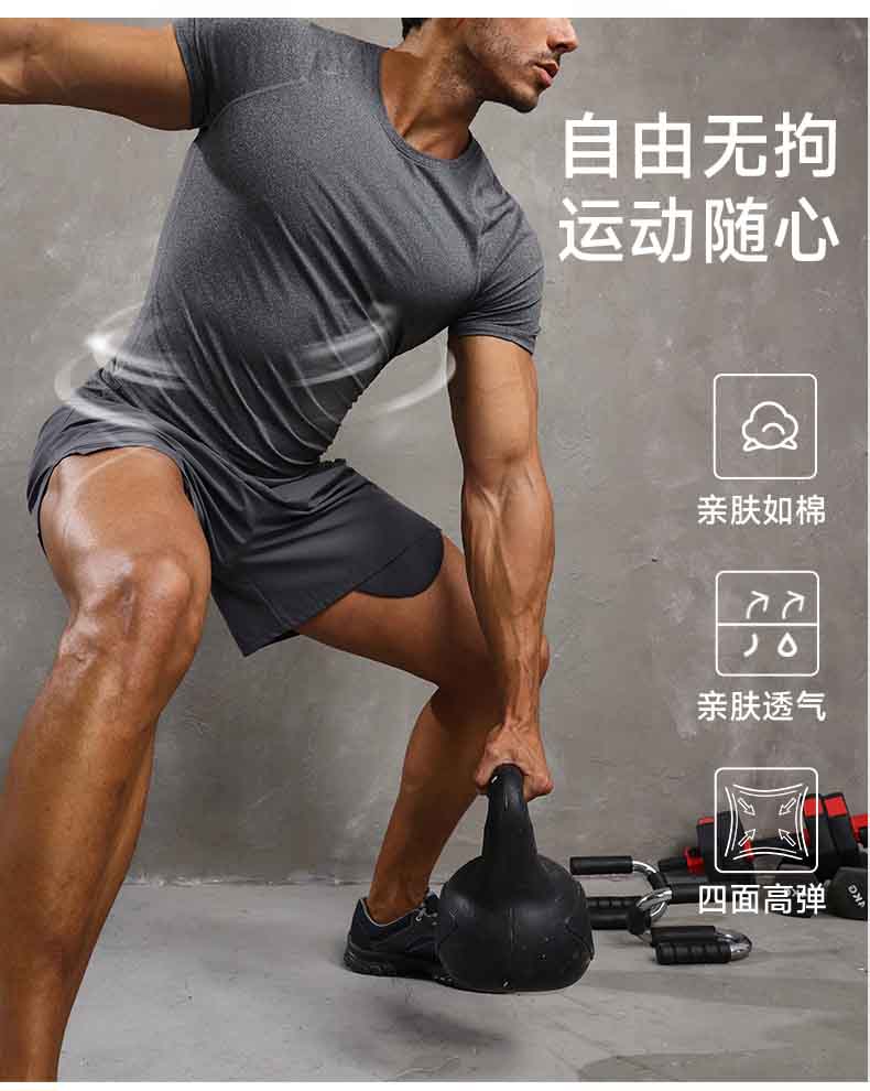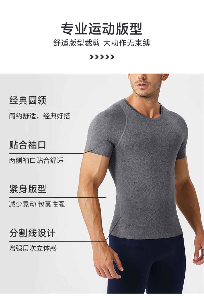 跃牌【欲动春风】男装系列 紧身健身短袖高弹透气吸湿排汗跑步训练运动t恤51232
