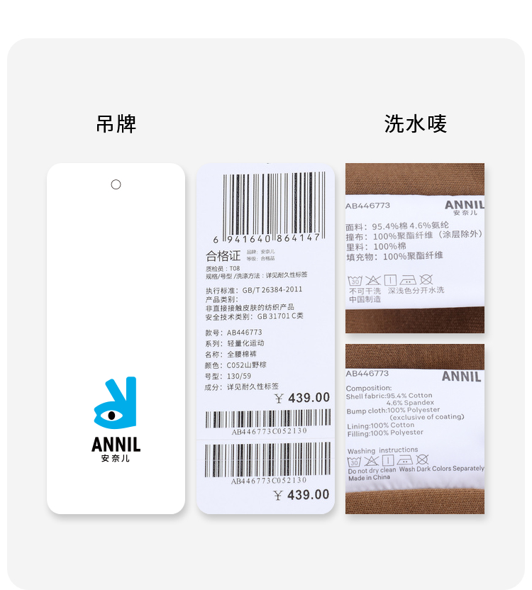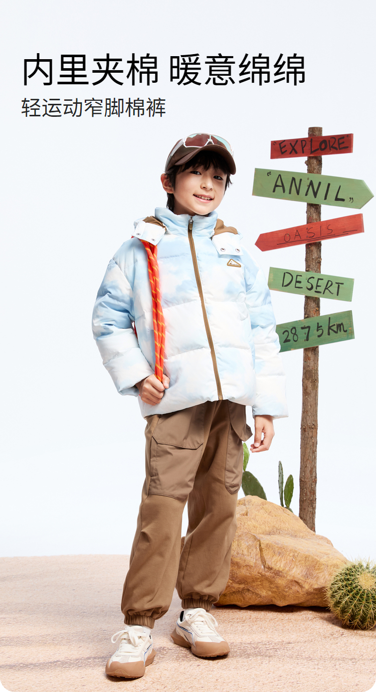 【轻暖】男童轻运动窄脚棉裤冬季新款安奈儿童装实体店同款AB446773