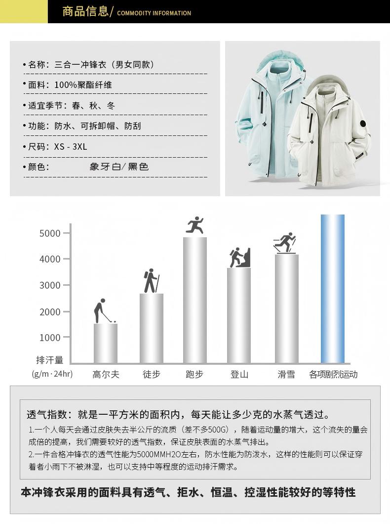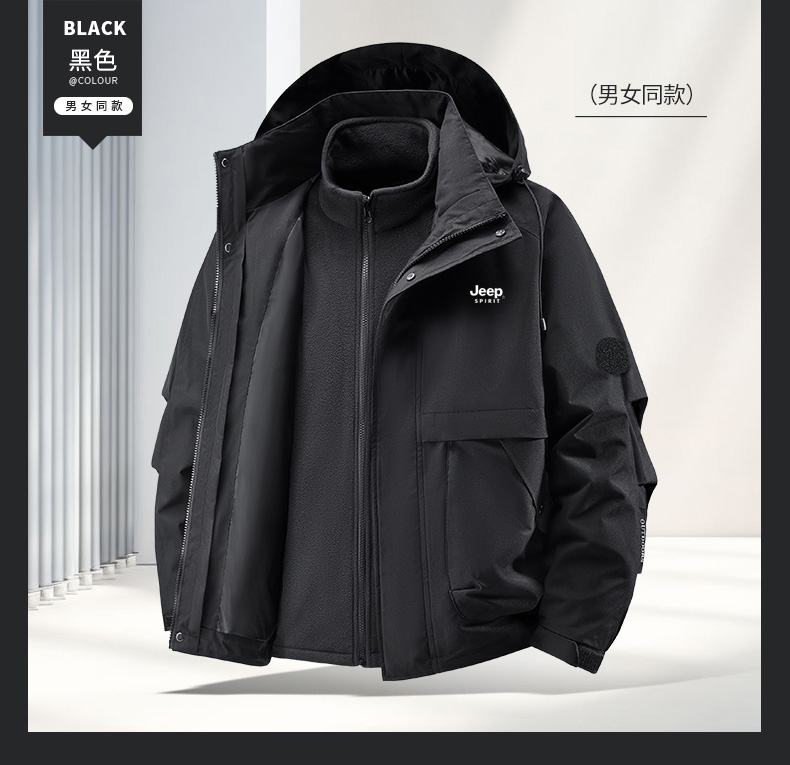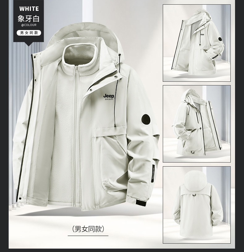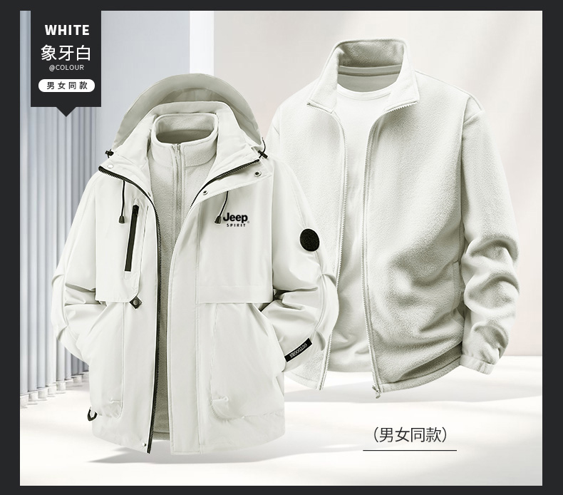 【反季清仓 工装硬朗风 防风防泼保暖】JEEP SPIRIT吉普户外男女同款三合一冲锋衣