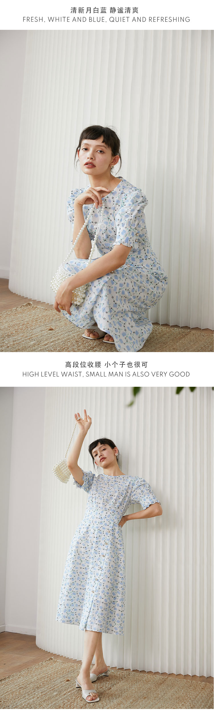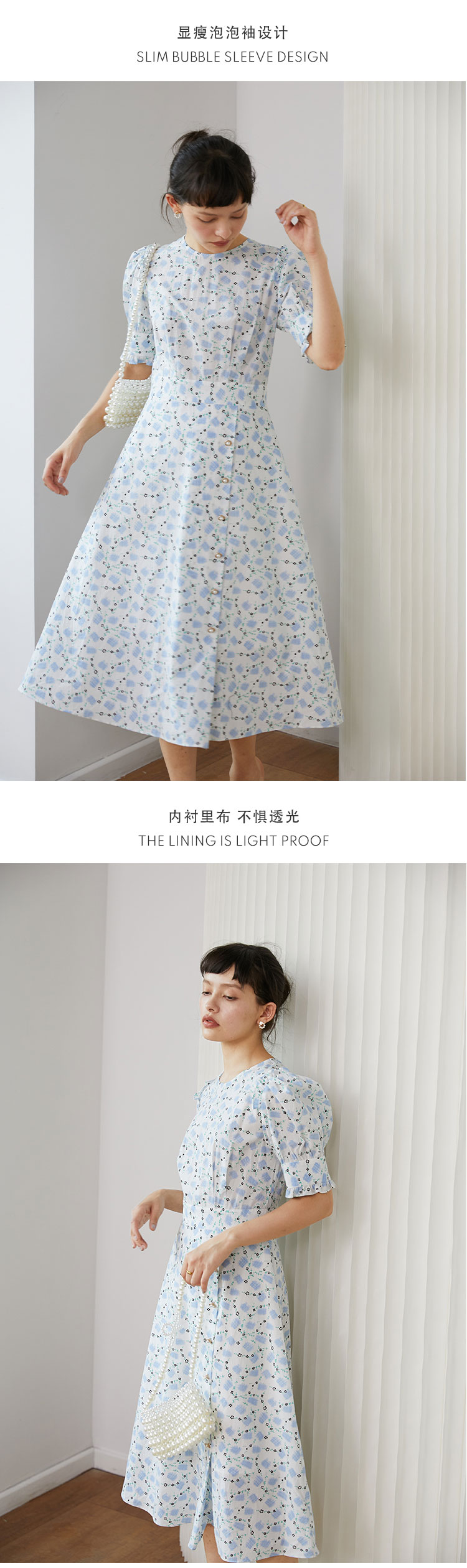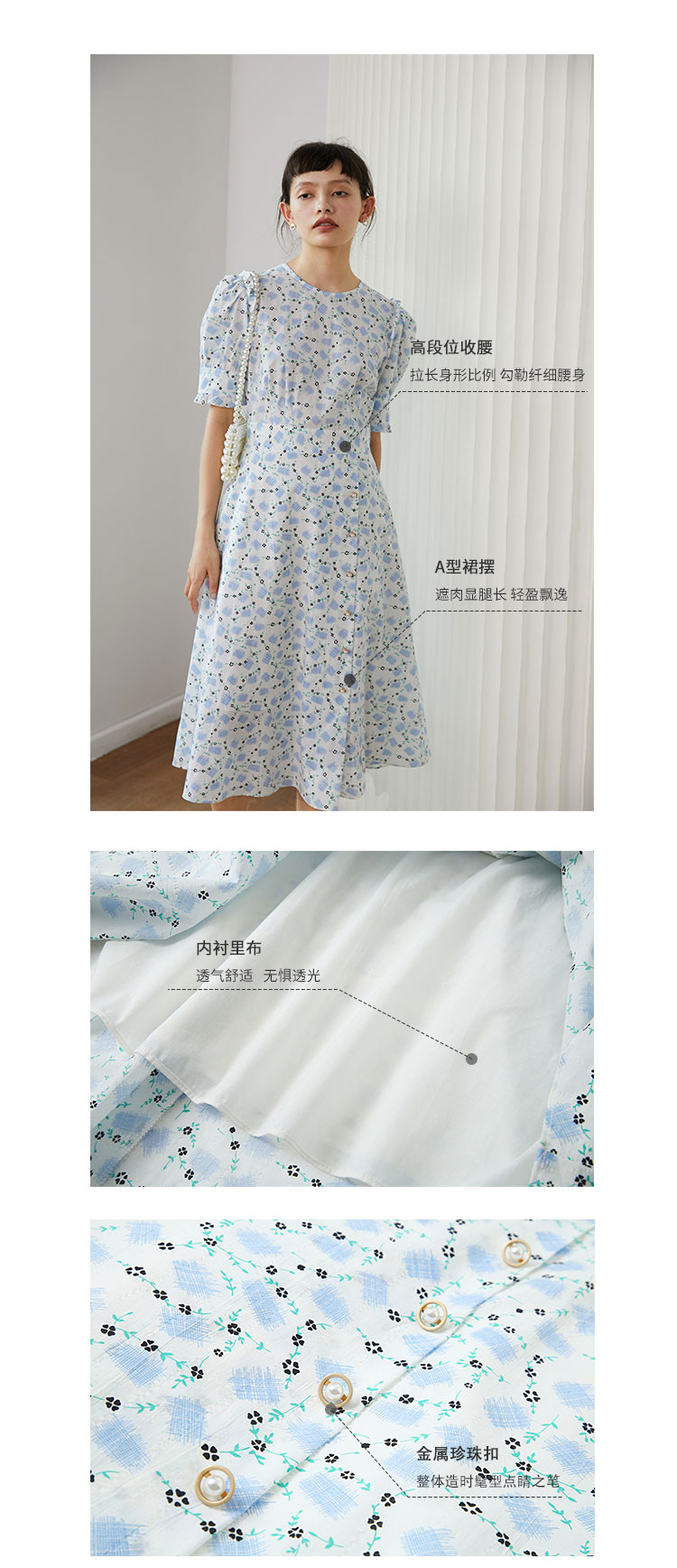 HeyDress法式复古碎花裙连衣裙女夏季新款收腰显瘦长裙木耳边薄款纯棉裙子
