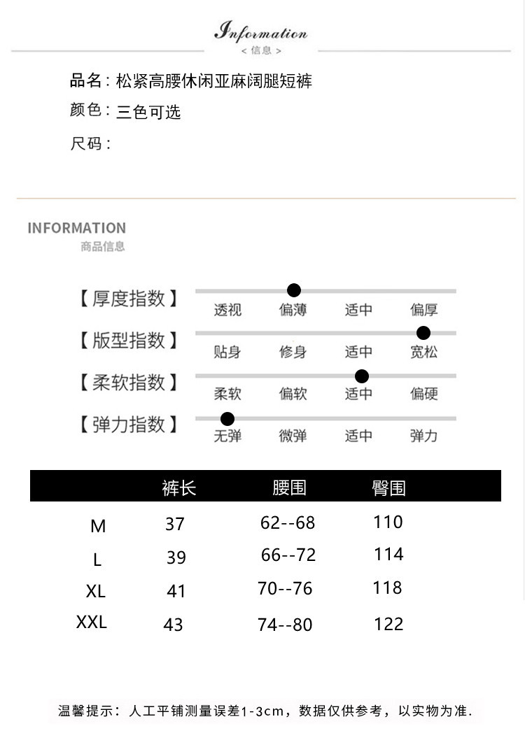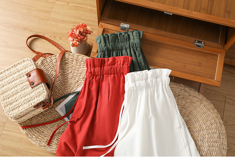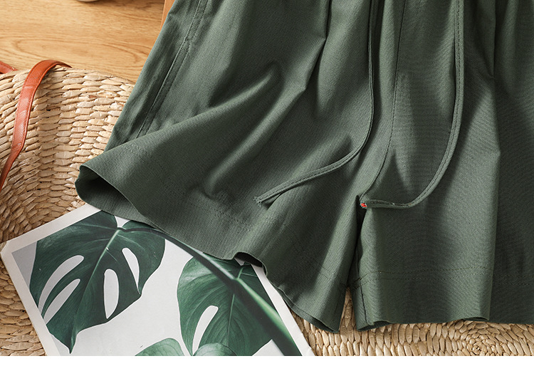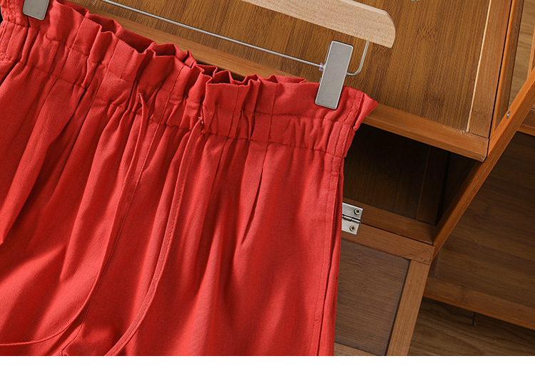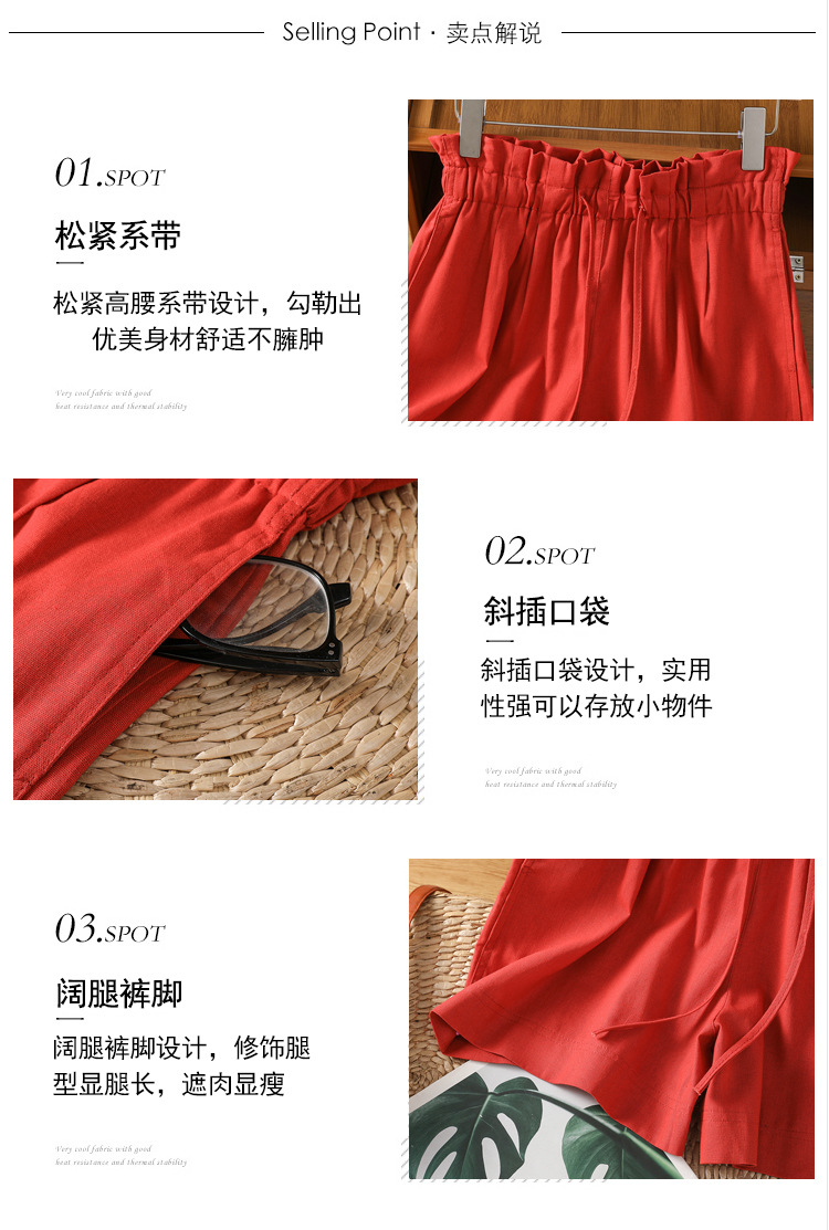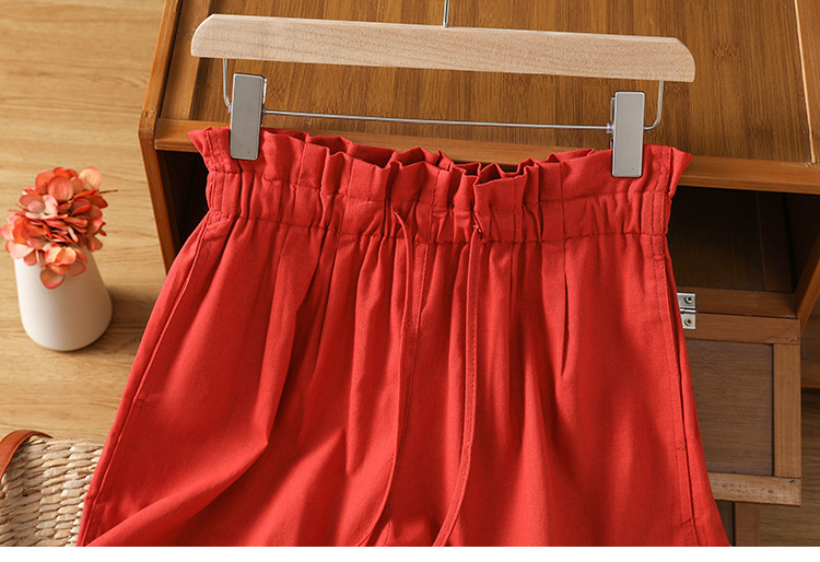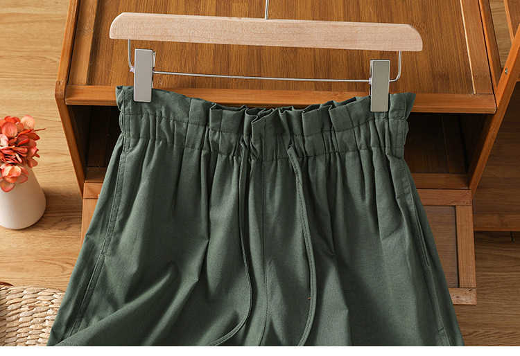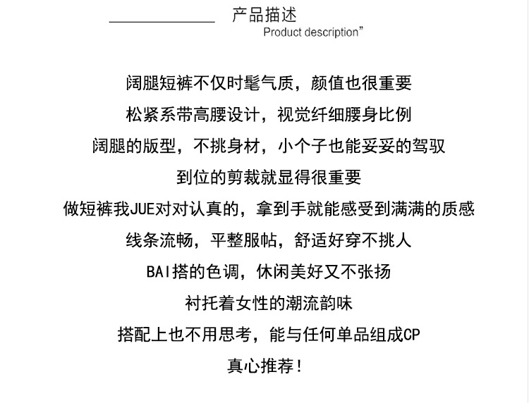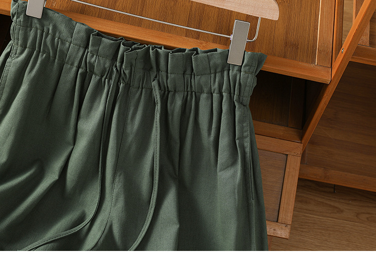 GYH 888纯色休闲宽松阔腿裤薄款松紧腰简约五分裤