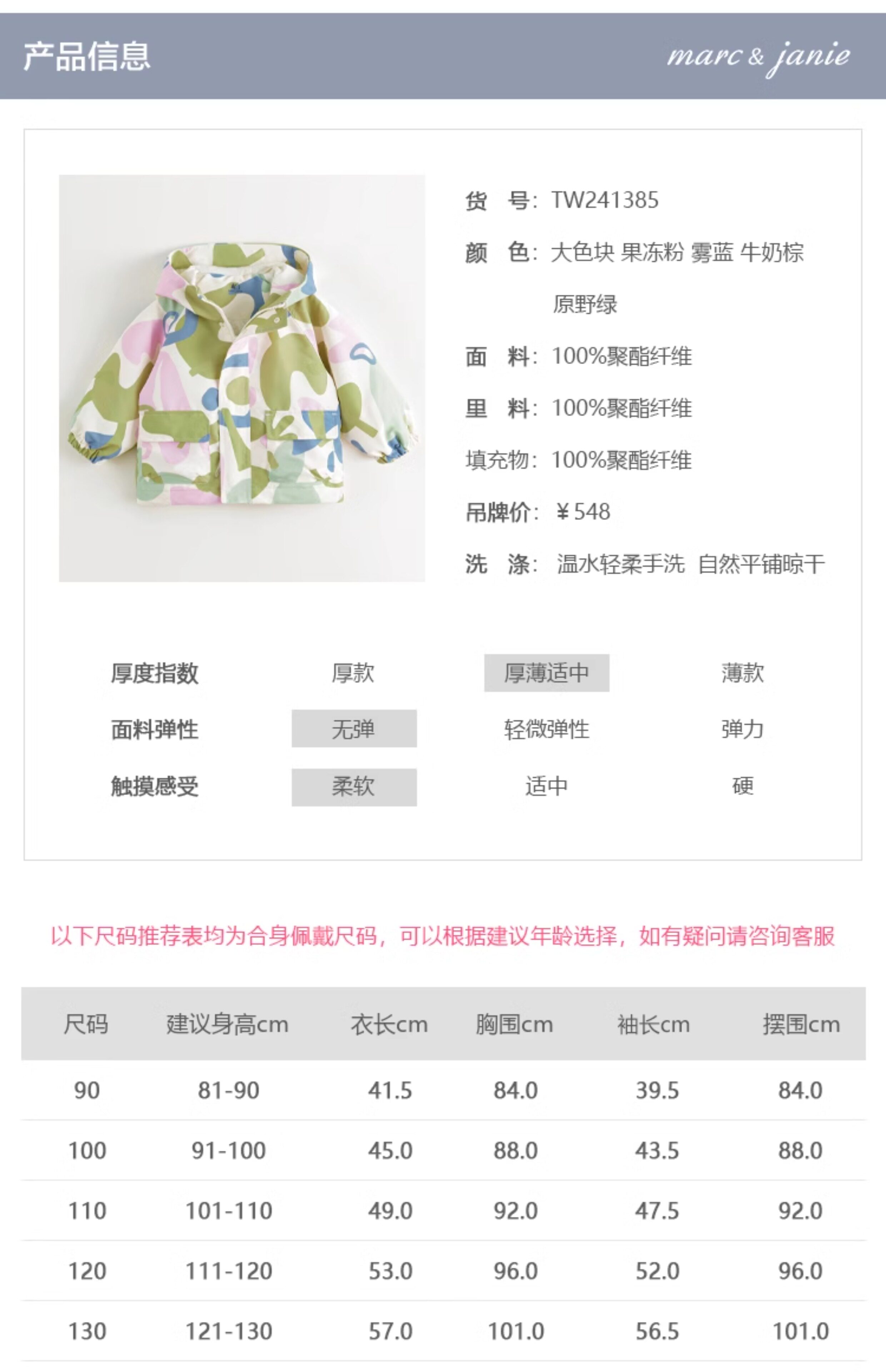 【三防】马克珍妮男童女童户外防风外套衣儿童夹克春秋241385