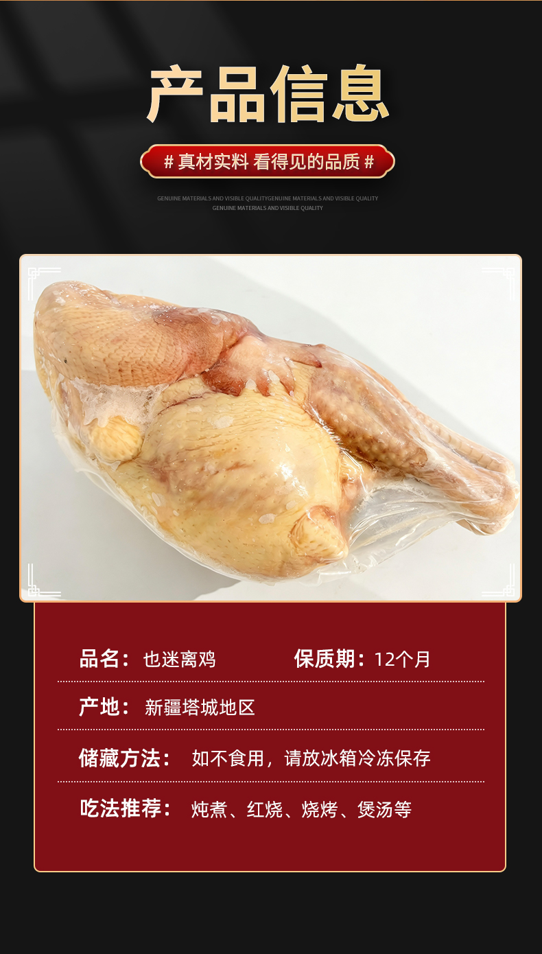 额雁·新疆塔城速冻鸡1~1.5kg /只 肉质鲜美筋道