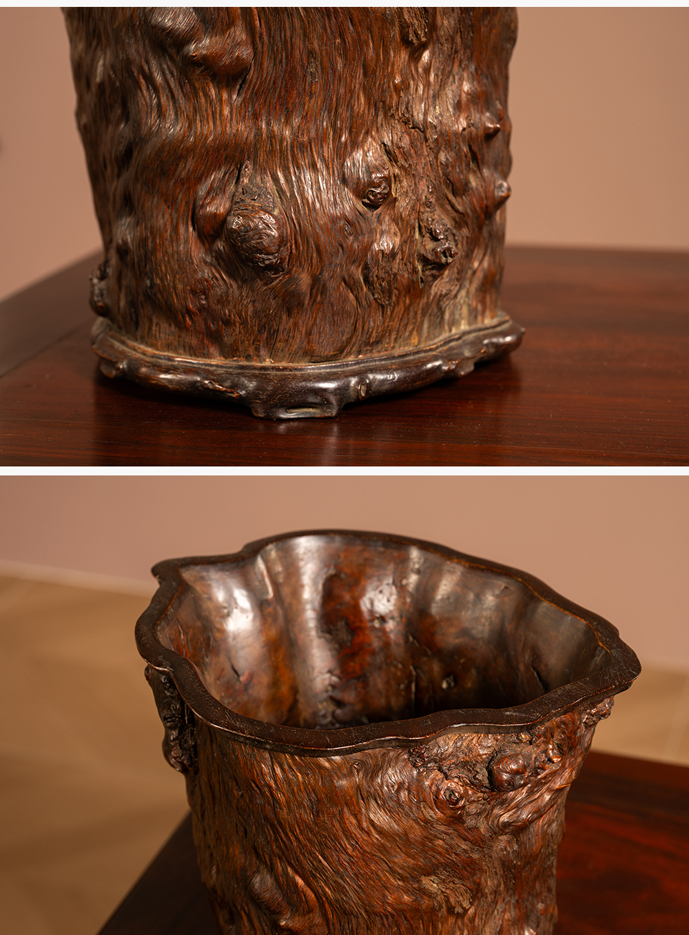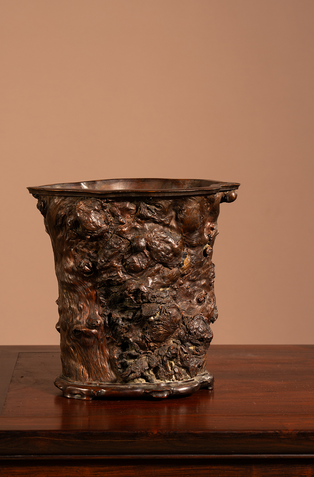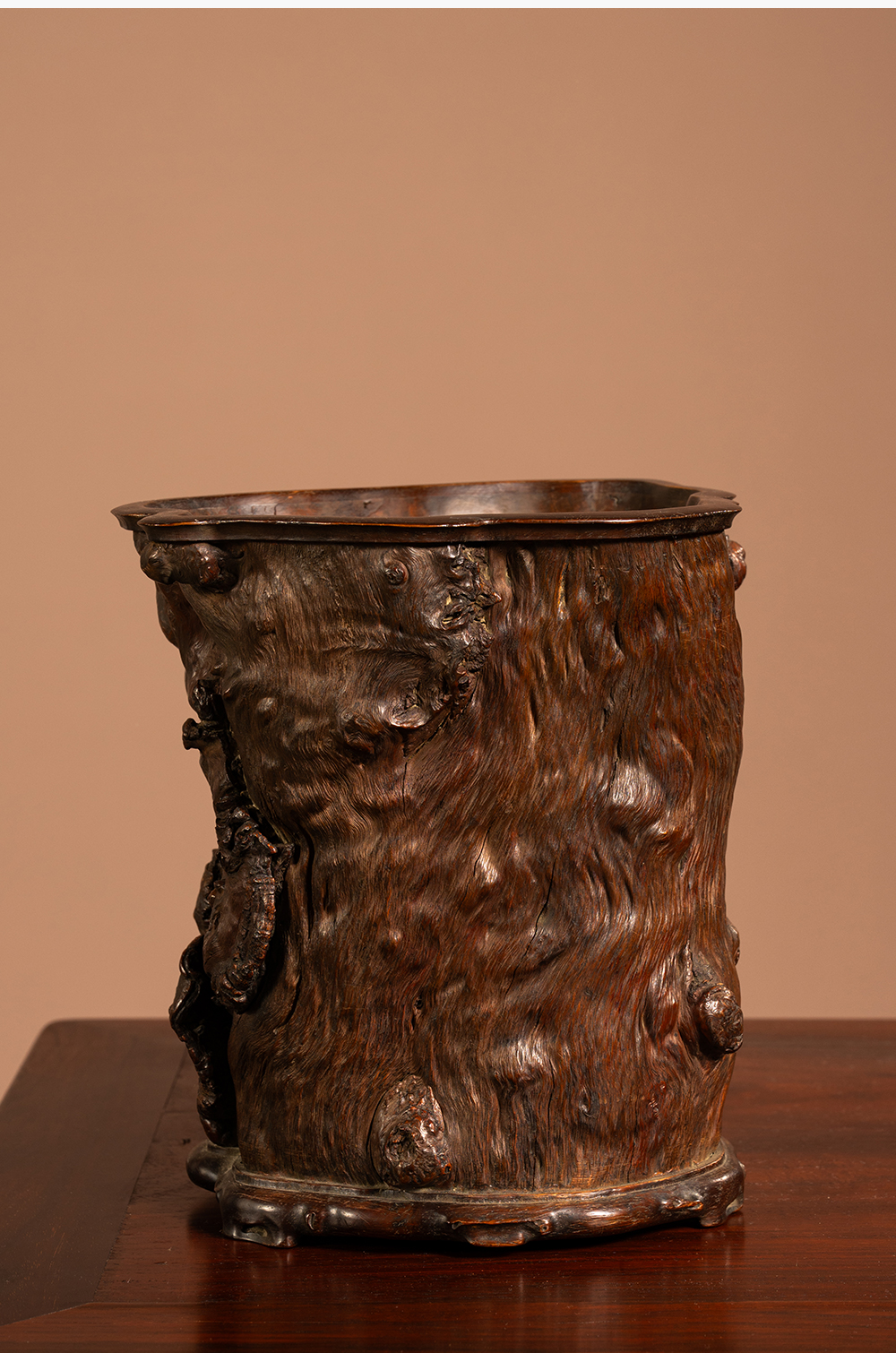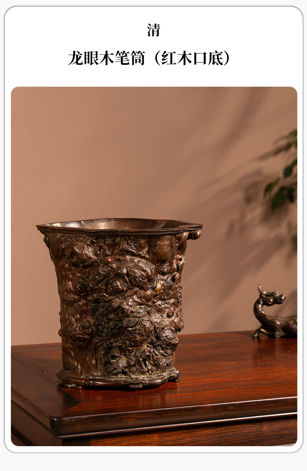 清 龙眼木笔筒(红木口底)