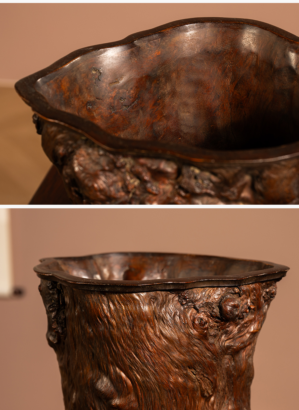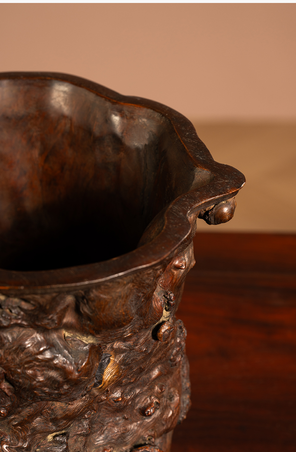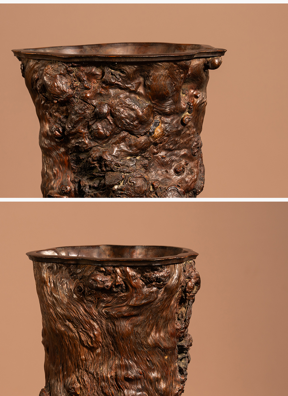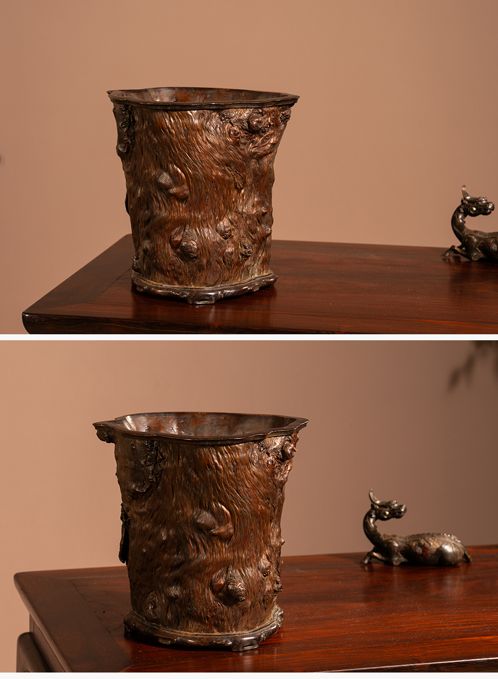清 龙眼木笔筒(红木口底)