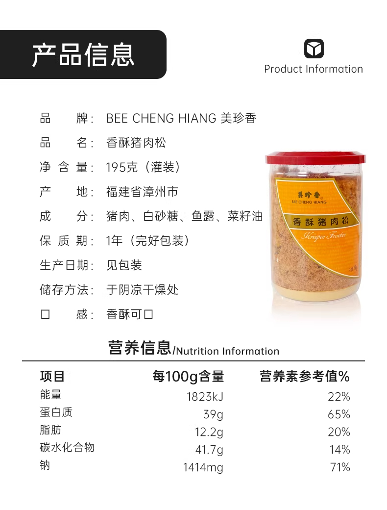美珍香香酥猪肉松195g配粥馒头寿司饭团面包美味肉类即食零食罐装