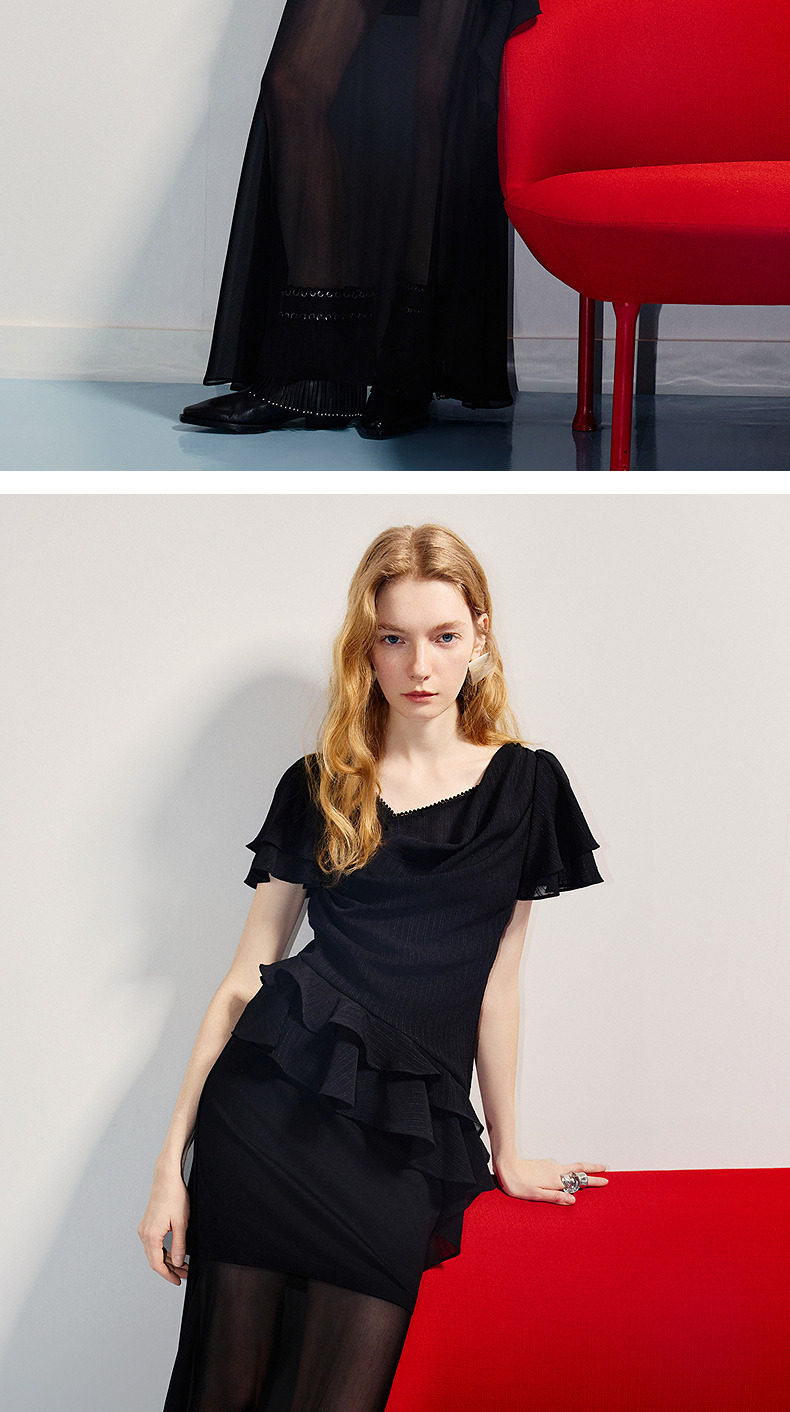 【商场同款】MAXRIENY精致浪漫针织拼接真丝鱼尾半裙桑蚕丝裙25夏(货号:MC86SK285)