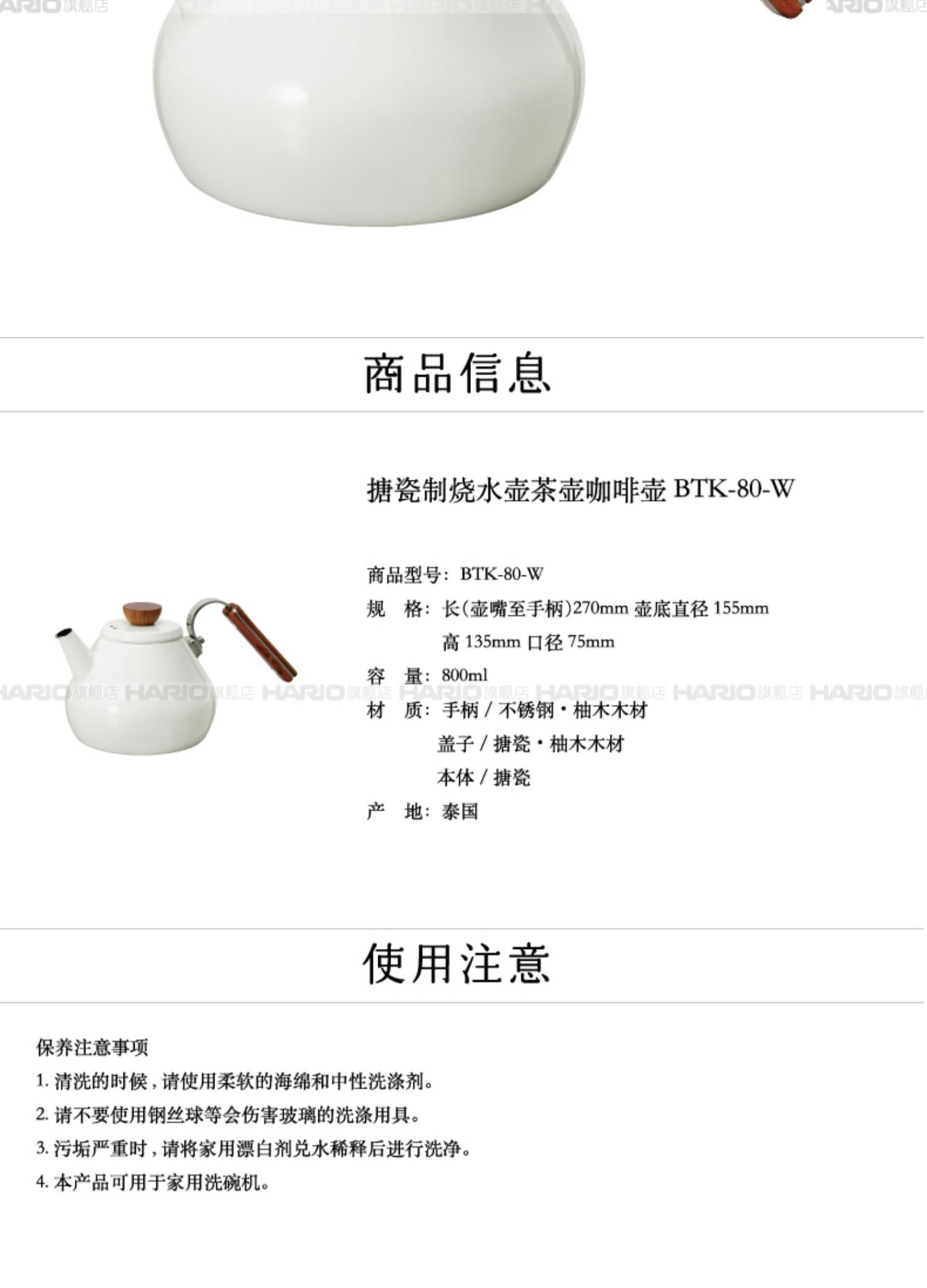 【HARIO】日式搪瓷制烧水壶茶壶家用煮水壶功夫茶具明火BTK
