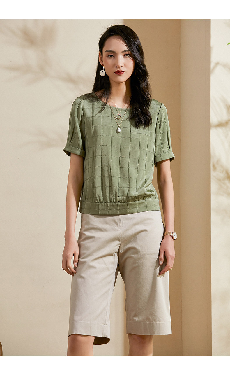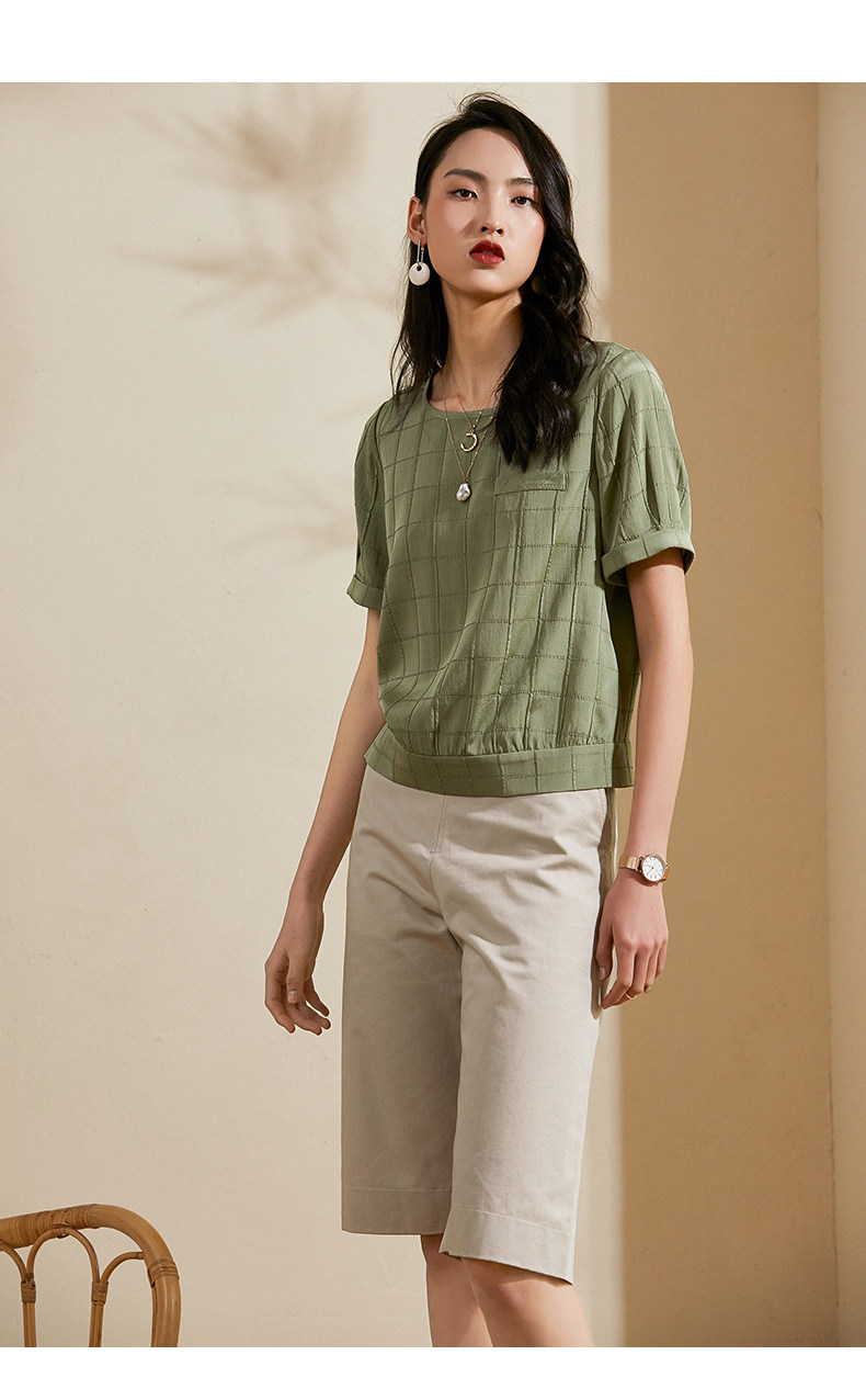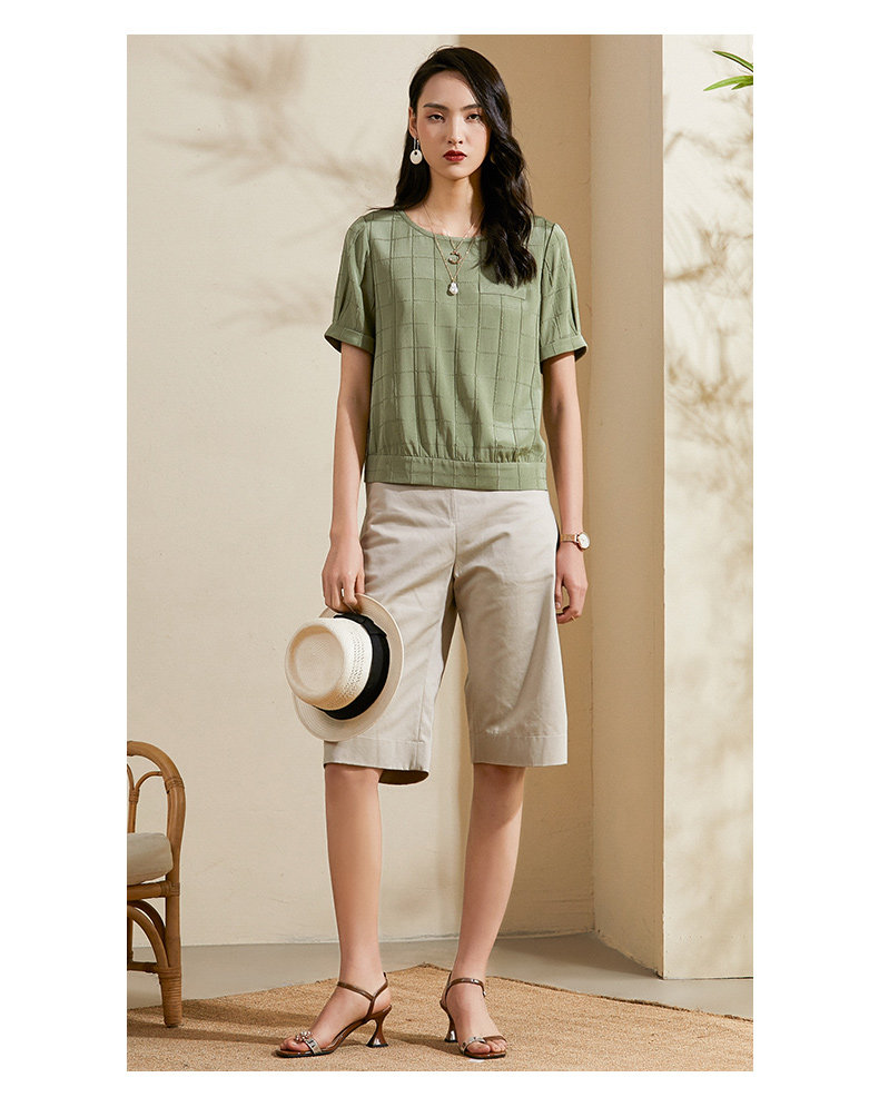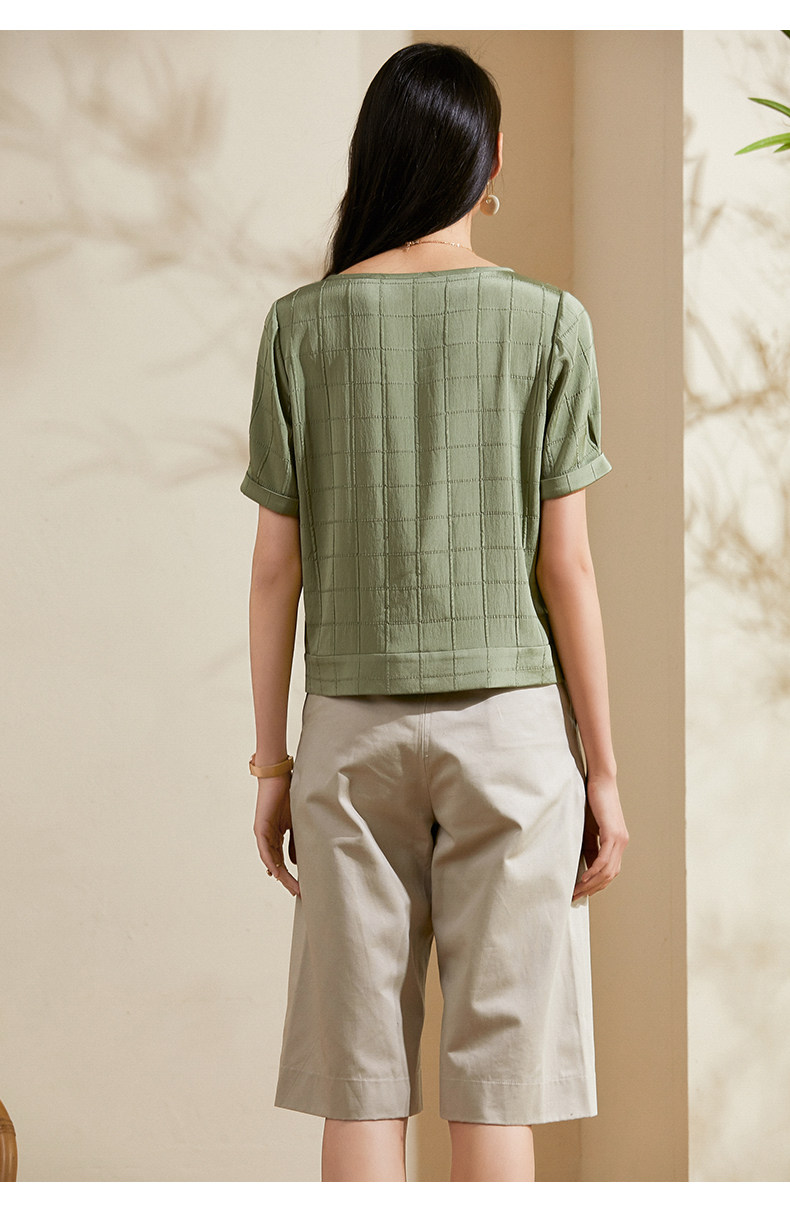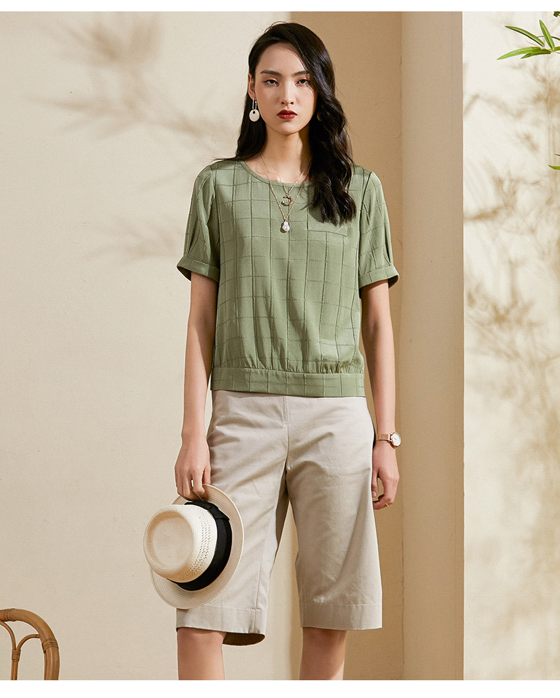 乔万尼桑蚕丝衬衫洋气女夏装新款宽松百搭短袖上衣气质设计感ES2C182