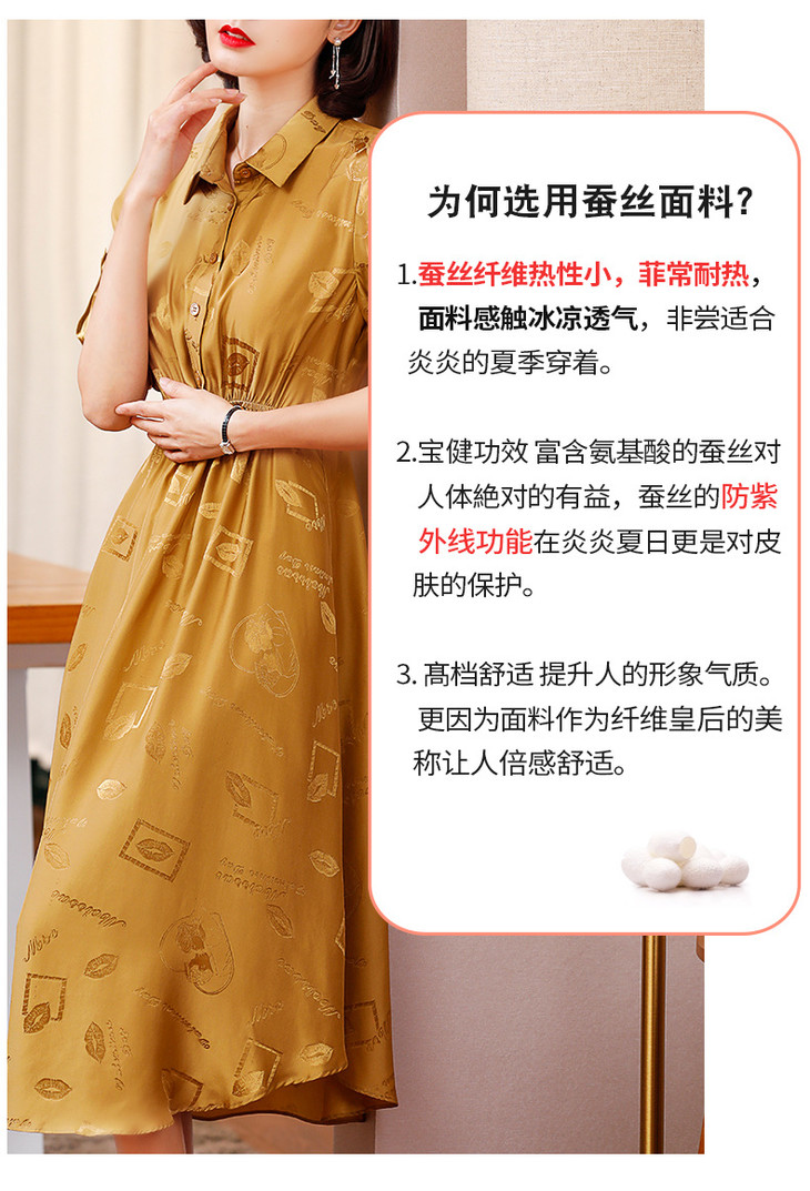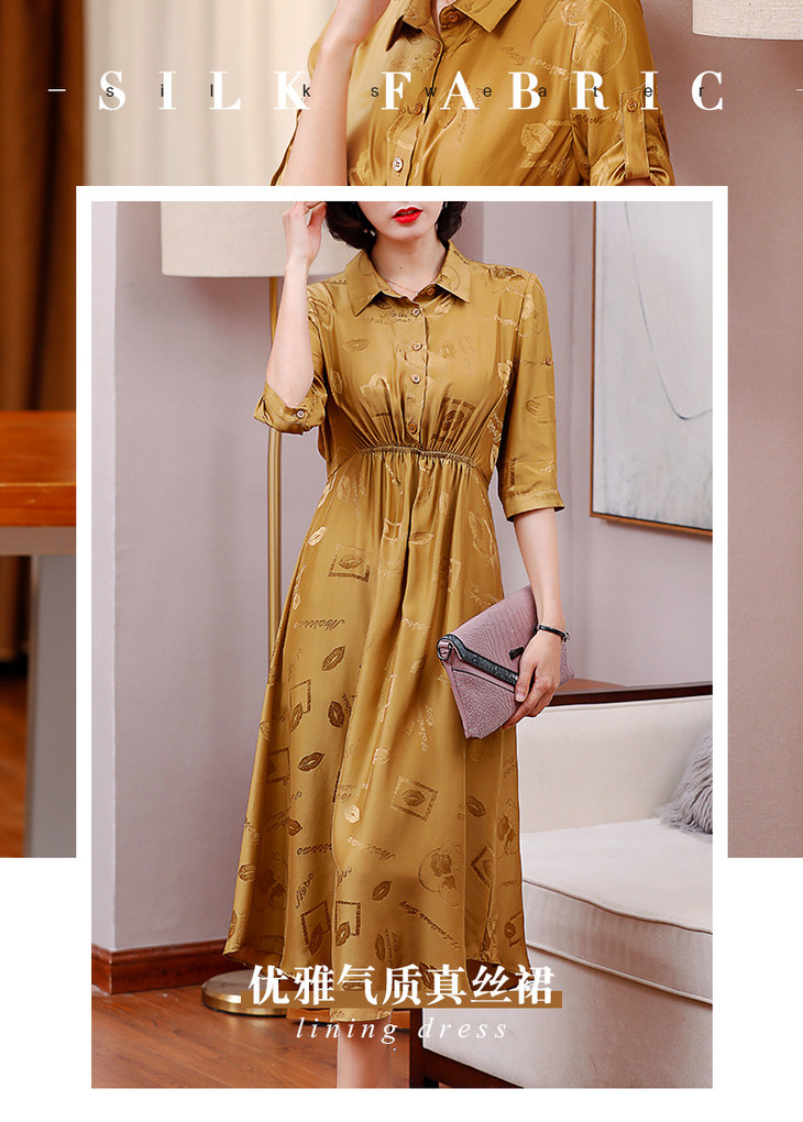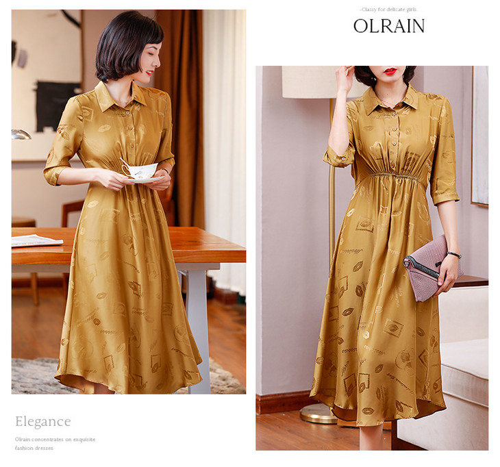 NYT-20118-22020新款翻领单排扣弹力松紧腰真丝提花中长裙