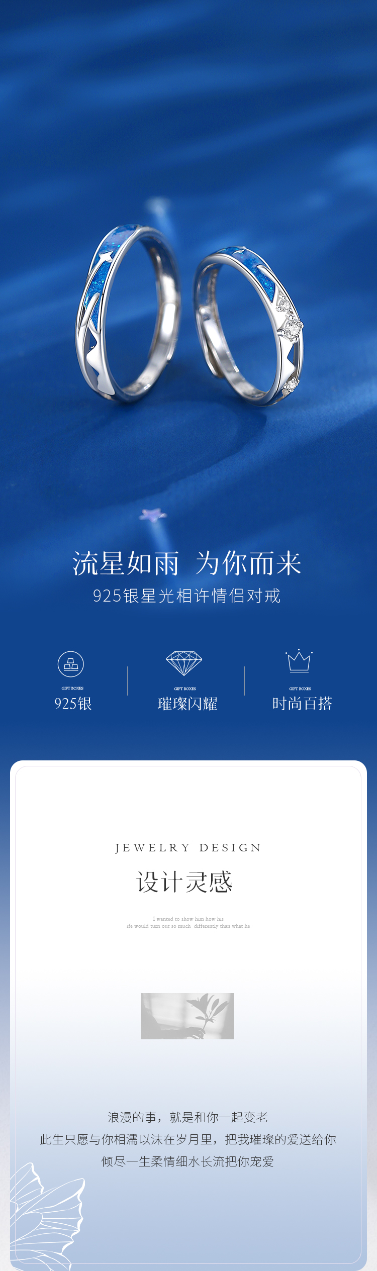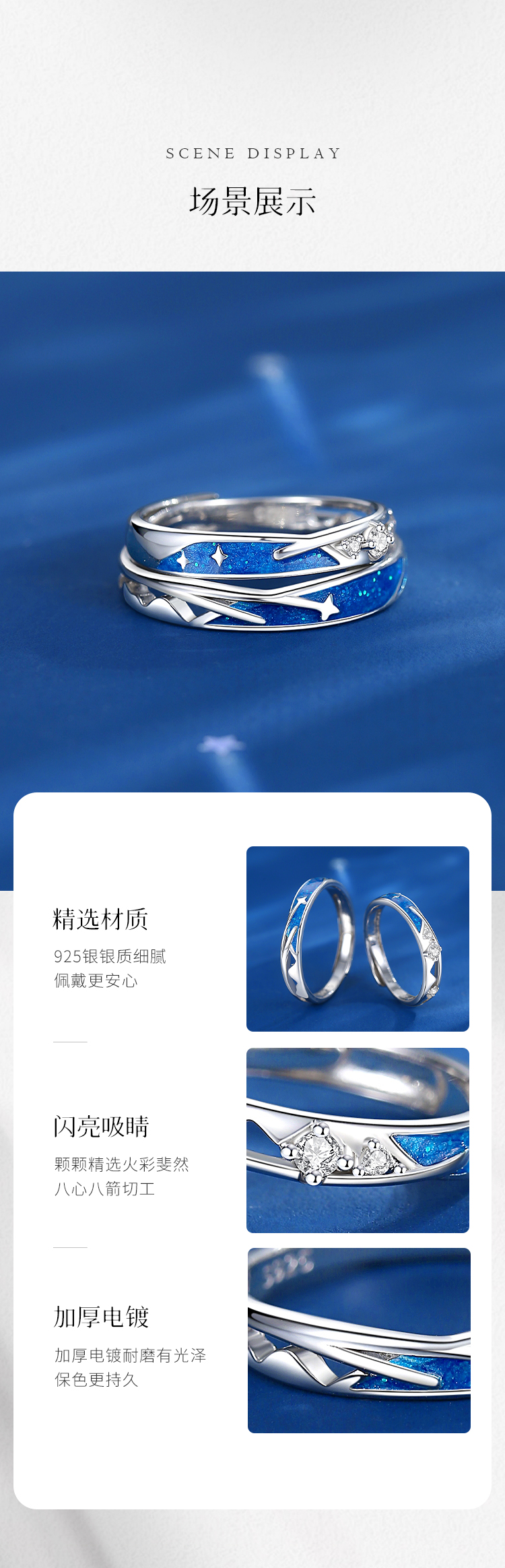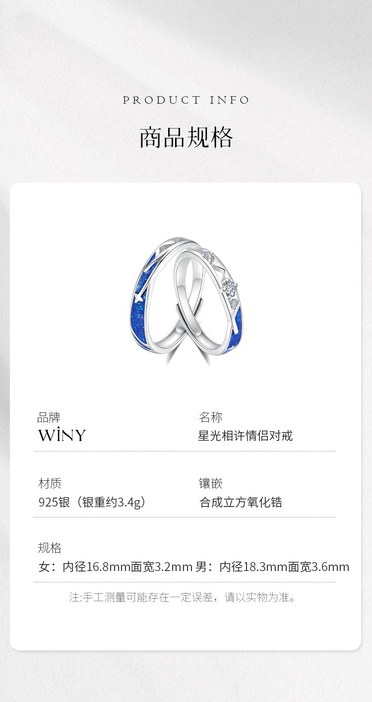 Winy925纯银星光相许情侣戒送女友闺蜜节日生日礼物