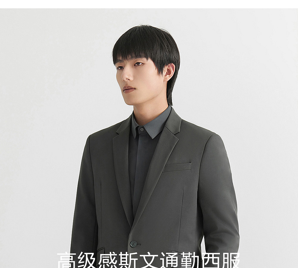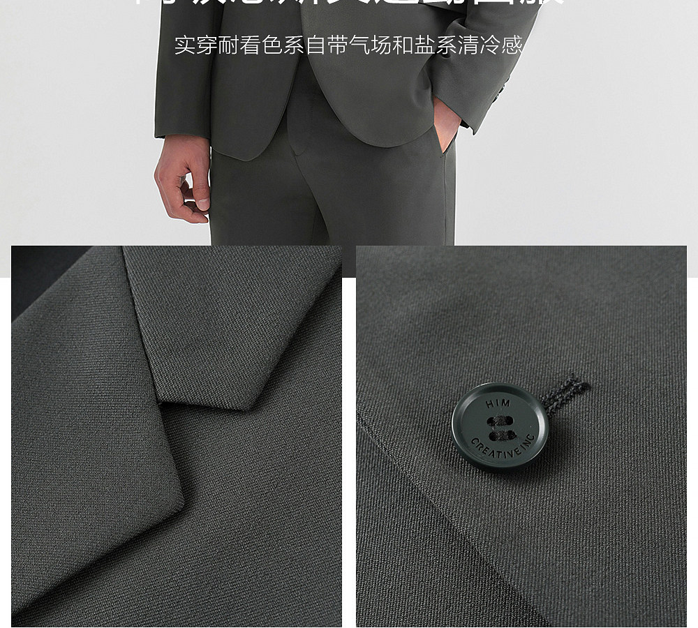 HIM漢崇 休闲套西时尚男士上班宴会年会简约优雅帅气修身西装套装