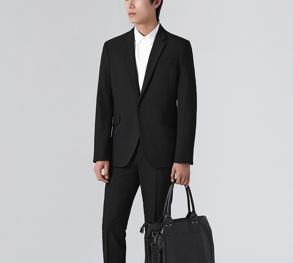 HIM漢崇 套装西服男经典高级感黑色修身斯文商务正装宴会西装礼服