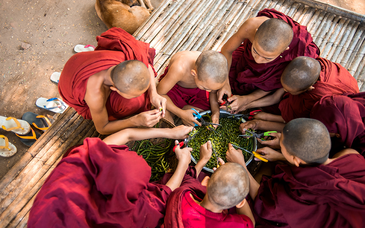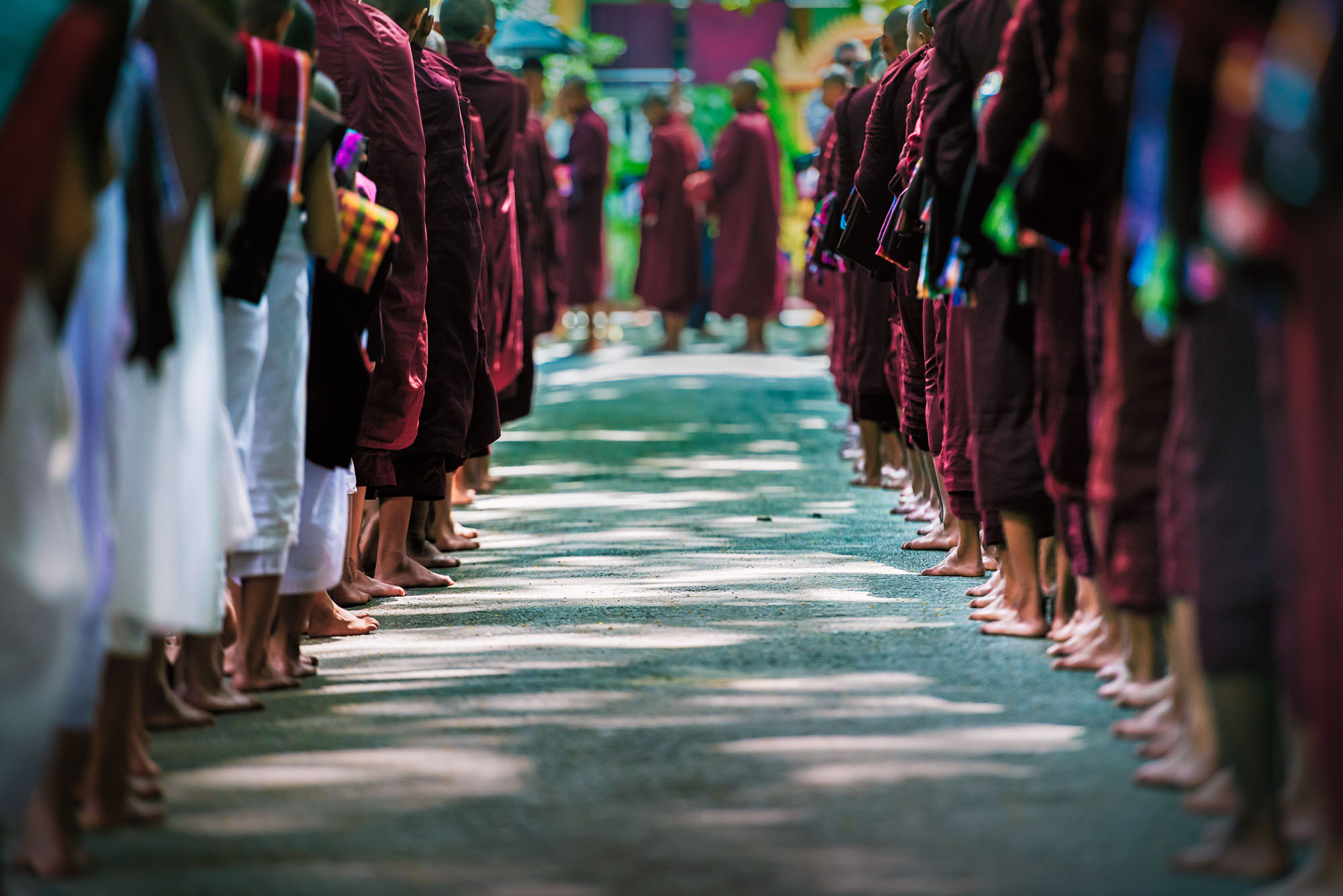 千人僧饭布施(马哈根达扬僧院):清晨的橘红僧袍队列与寂静的仪式,震撼且治愈。