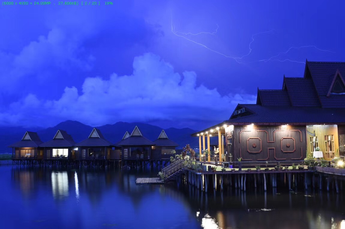 水上灯火湖畔的水上村庄亮起星星点点的灯光,倒映在湖中,宛如银河坠入人间。