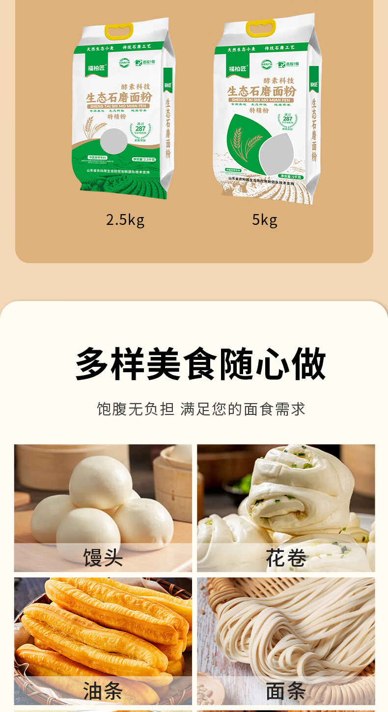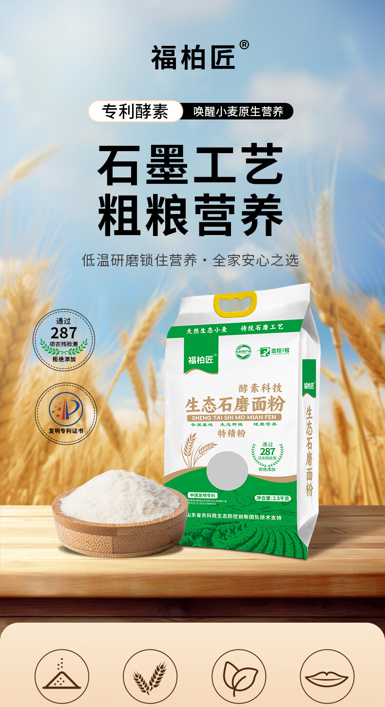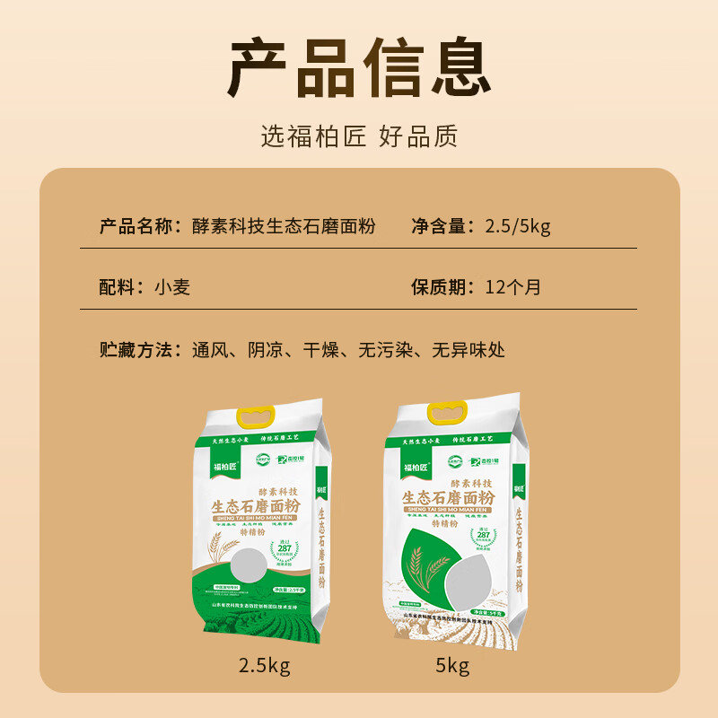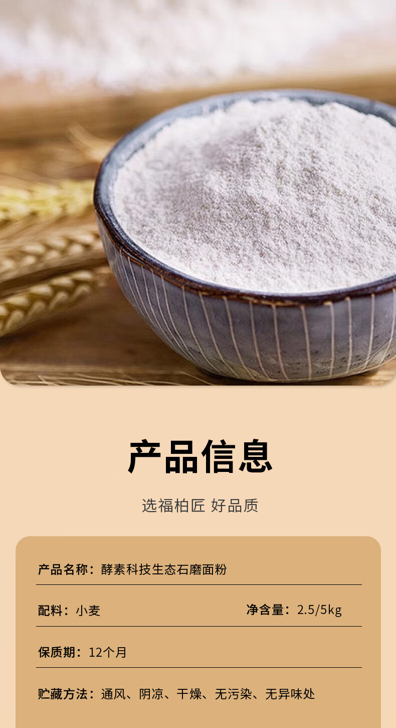 福柏匠酵素科技特精生态面粉家用高筋面粉5斤包子馒头通用非自发面粉