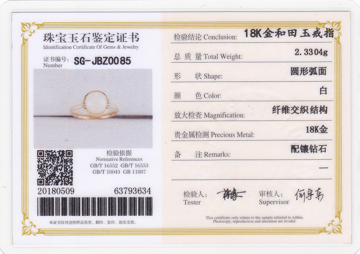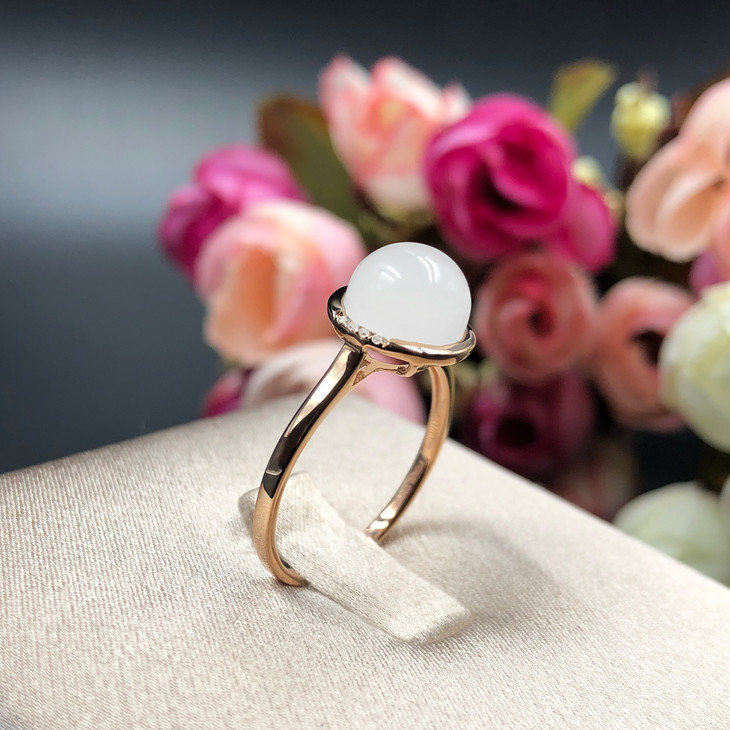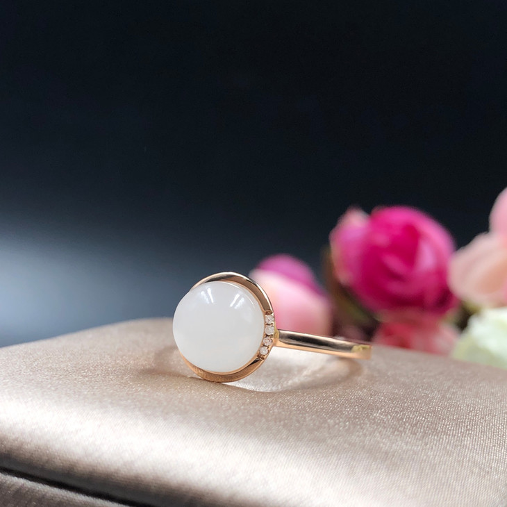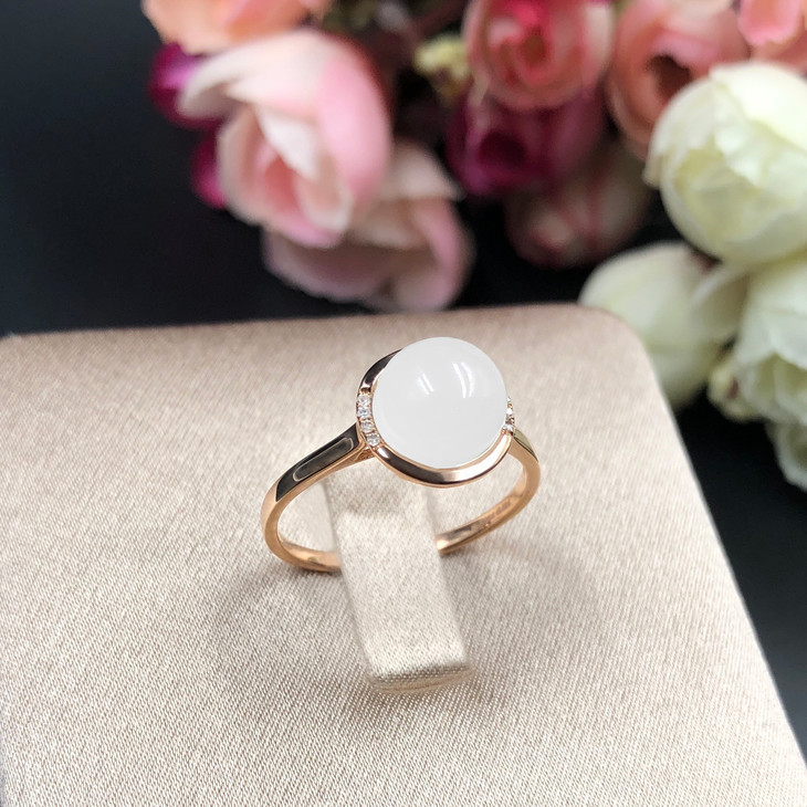 18K玫瑰金和田玉(白玉)镶钻戒指