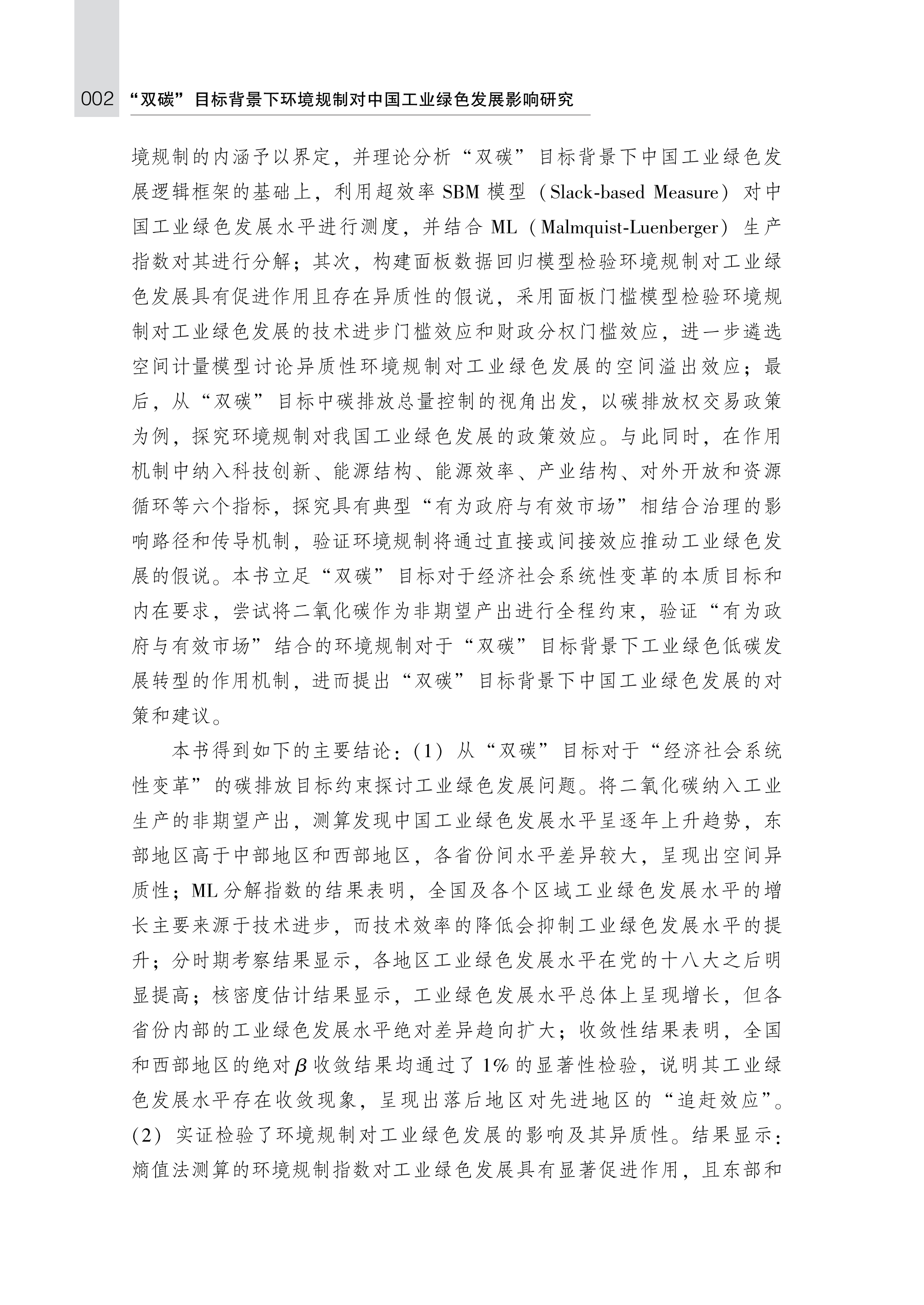 “双碳”目标背景下环境规制对中国工业绿色发展影响研究