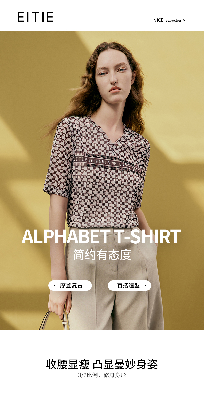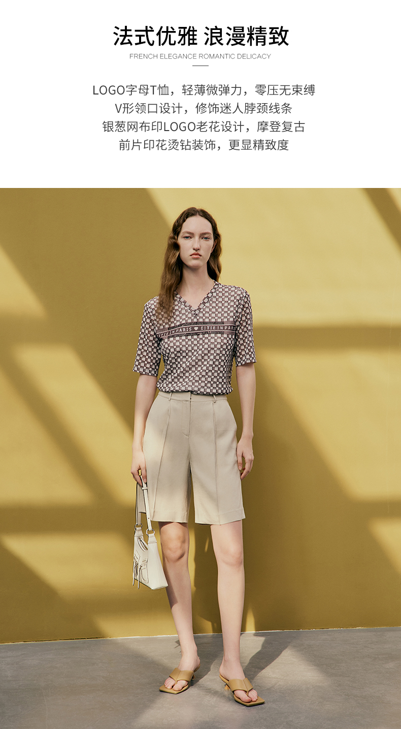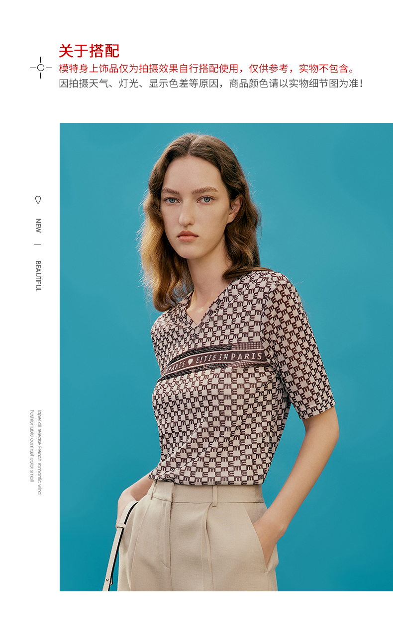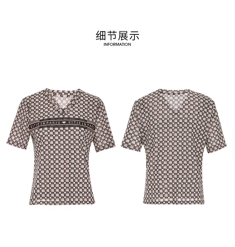 EITIET爱特爱夏季新款舒适时尚简约亲肤打底V领短袖女上衣T恤7302003