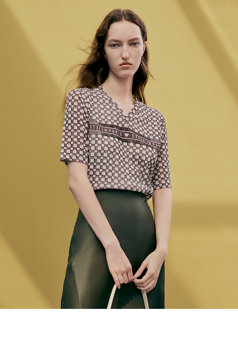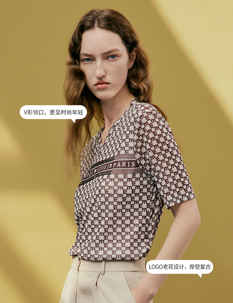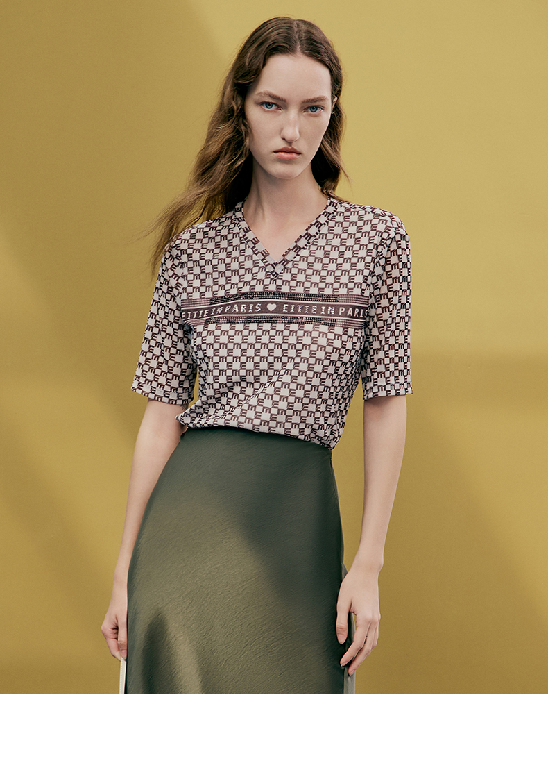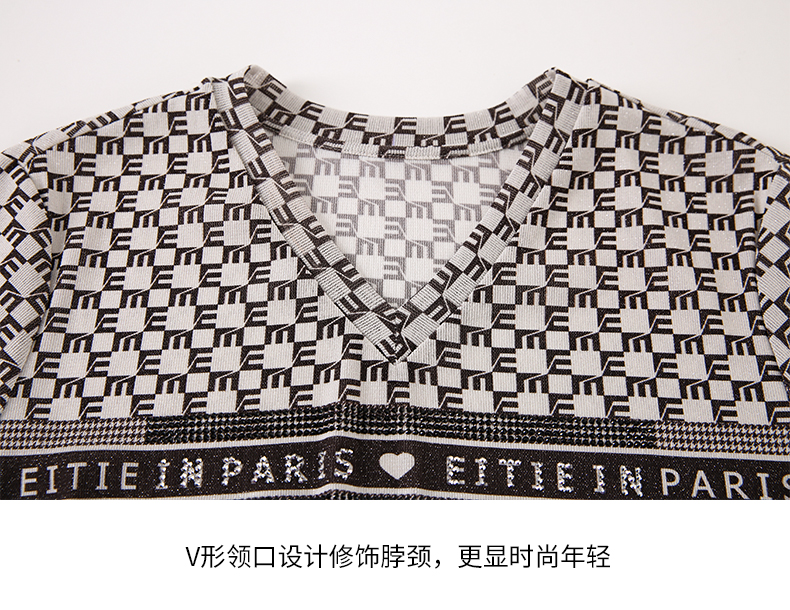 EITIET爱特爱夏季新款舒适时尚简约亲肤打底V领短袖女上衣T恤7302003