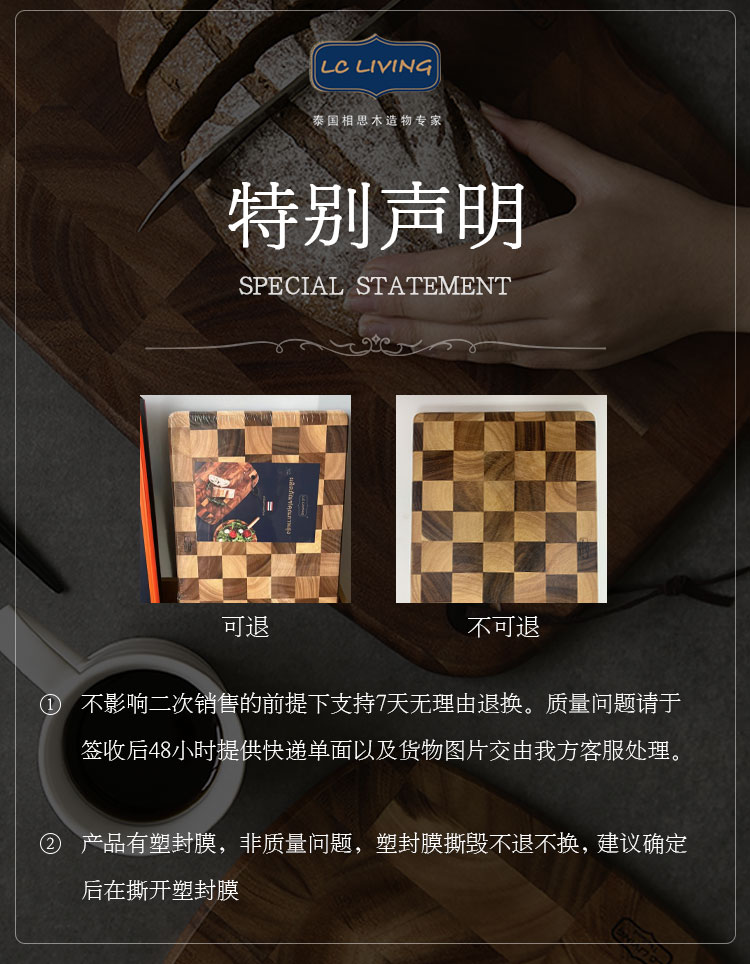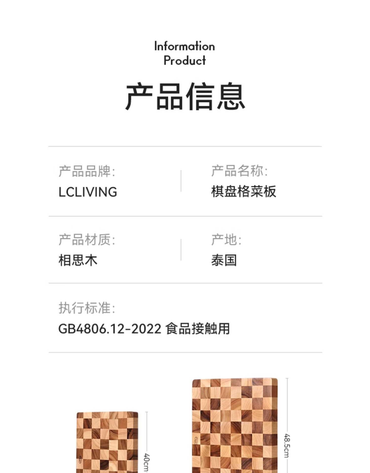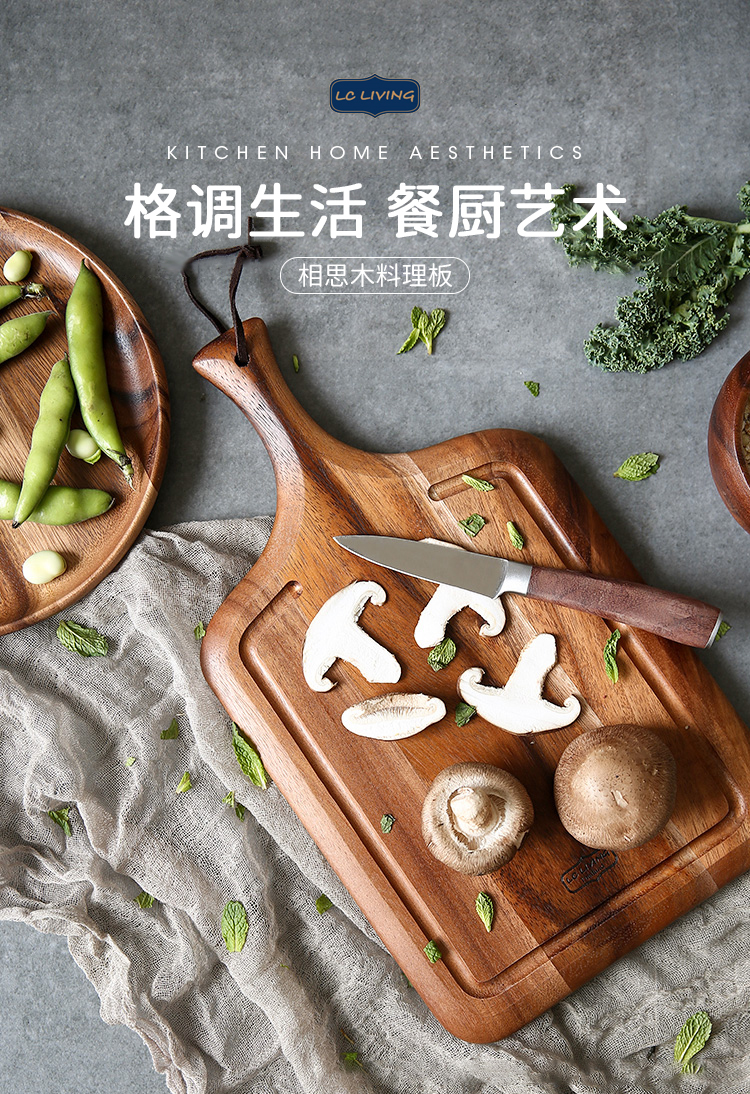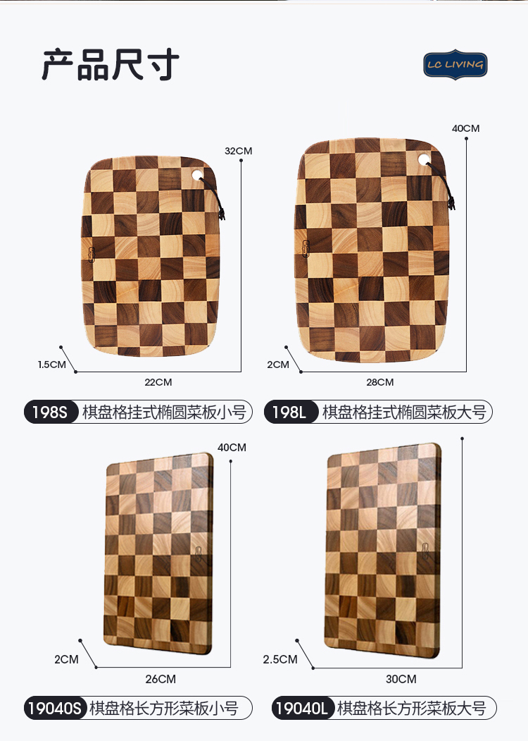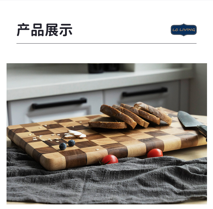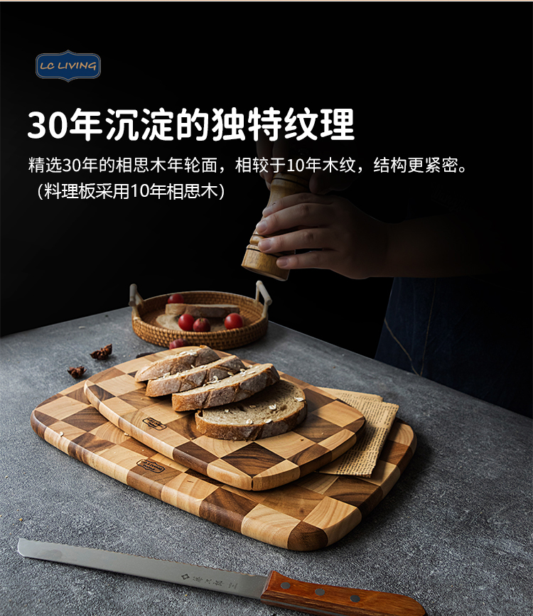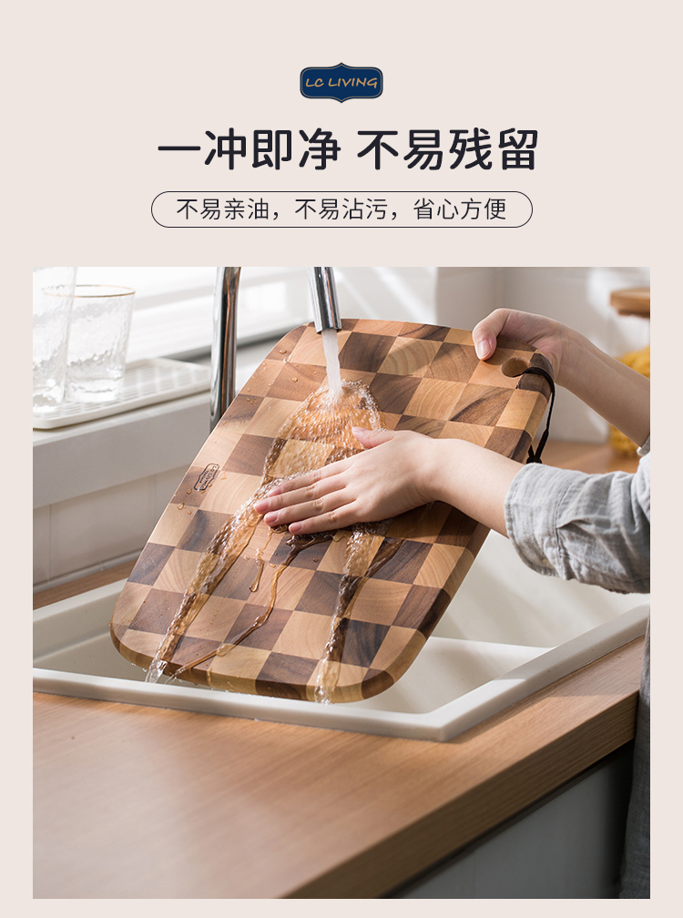 lcliving泰国相思木切菜板无漆无蜡家用实木棋盘格砧板厨房菜板