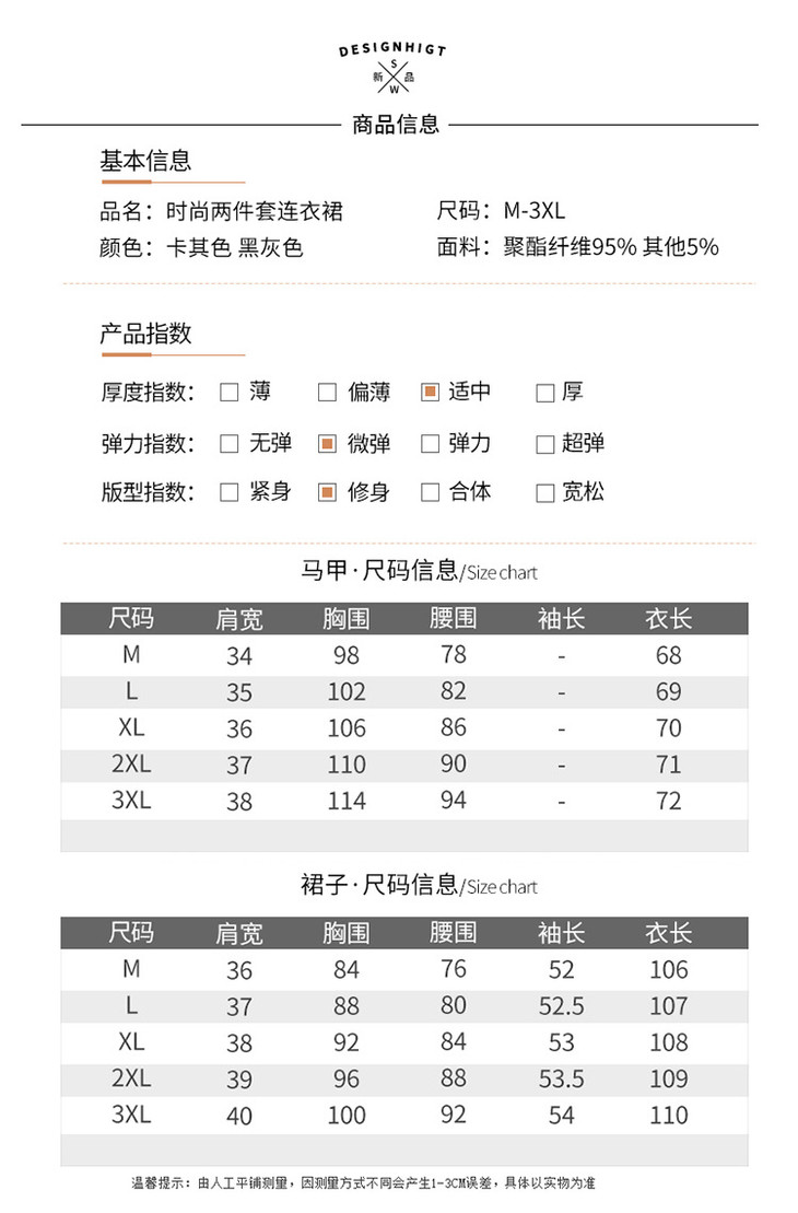 YW-YJY-Q8856时尚修身气质减龄马甲外套长袖连衣裙两件套