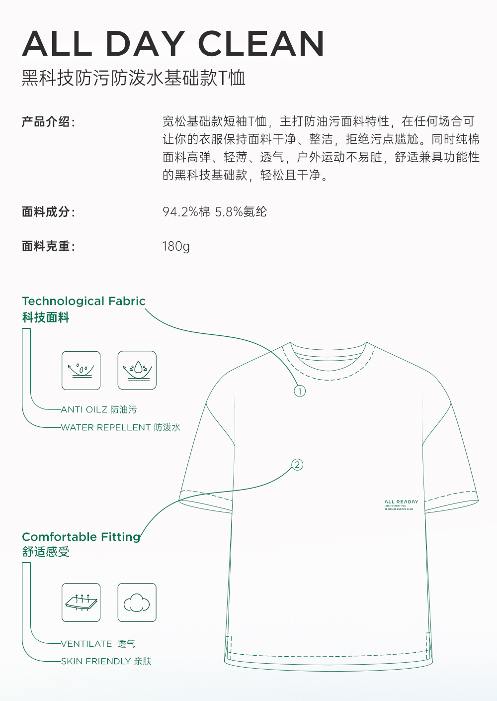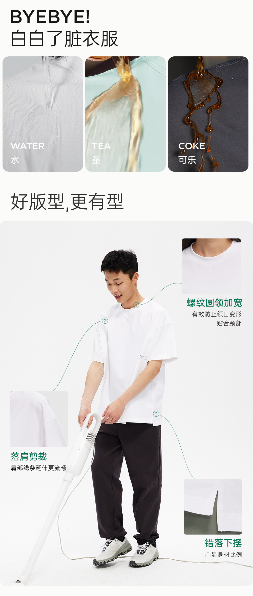 【好货清仓 白白了脏衣服 特氟龙防油防泼】新奇天户外棉感舒适轻功能T恤-宽松版,码数偏大