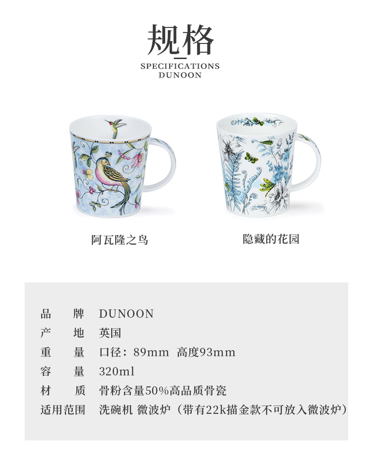 英国丹侬Dunoon骨瓷水杯 Lomond杯型 阿瓦隆之鸟