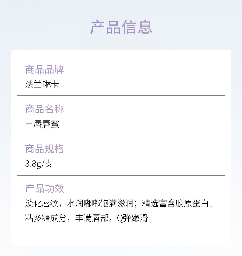 【水润嘟嘟闪亮动人】法兰琳卡丰唇唇蜜淡化唇纹饱满滋润富含胶原蛋白、粘多糖成分Q弹嫩滑
