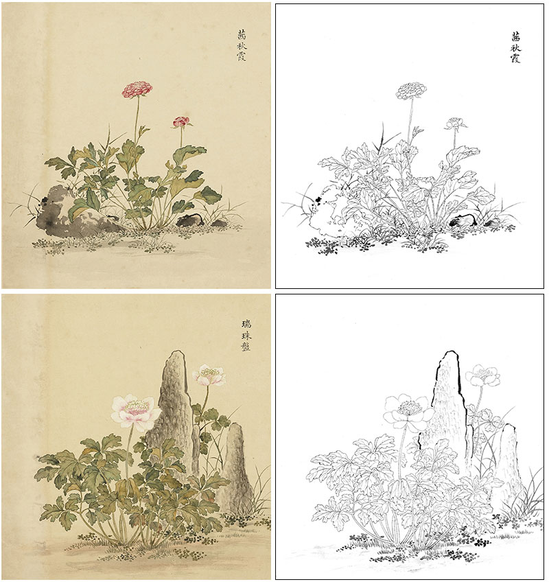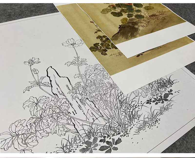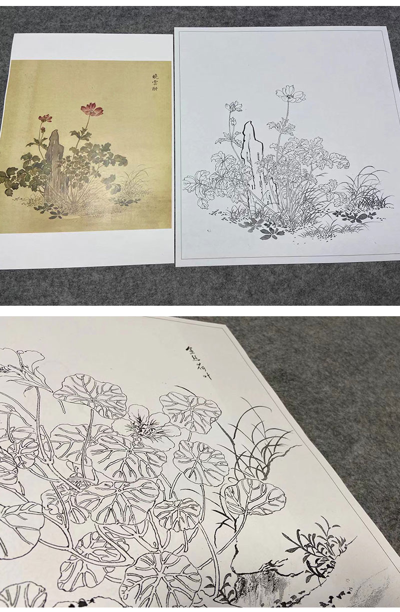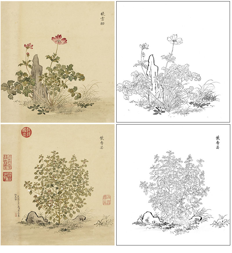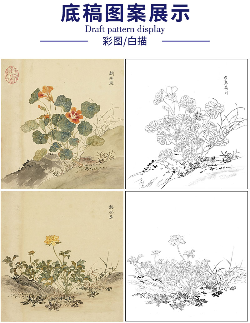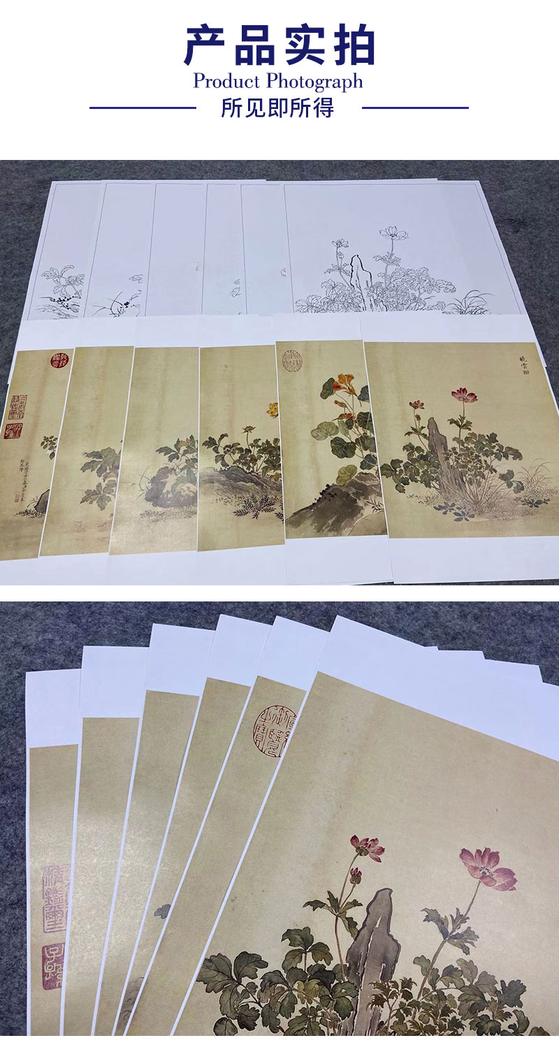 余省工笔花鸟画白描底稿海西集卉册小品一套六幅册页初学者尺寸40*42厘米MT22