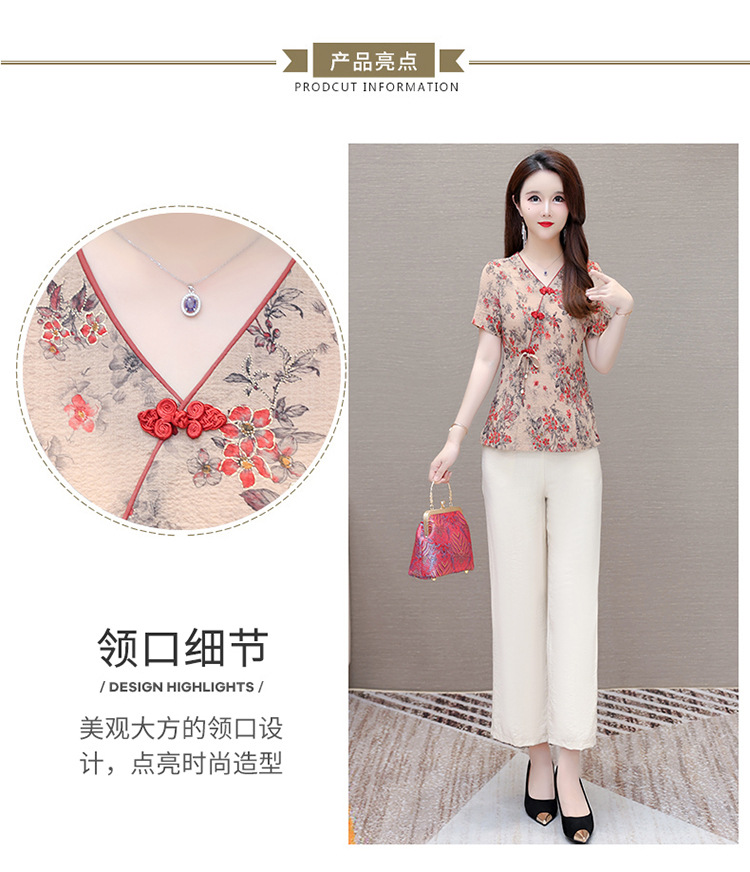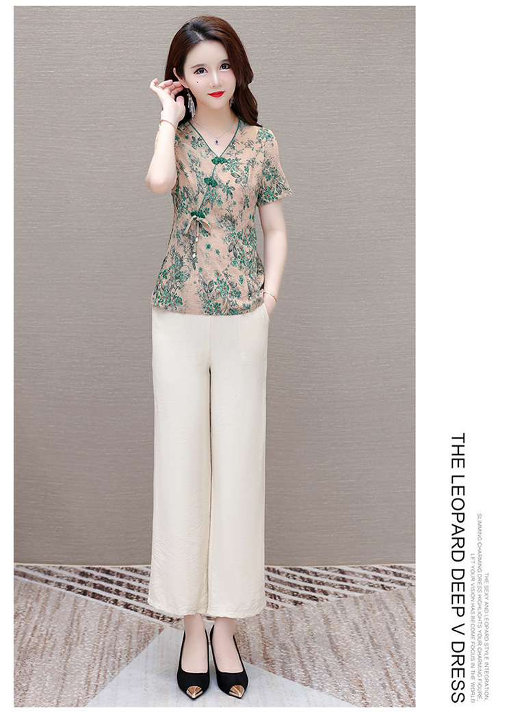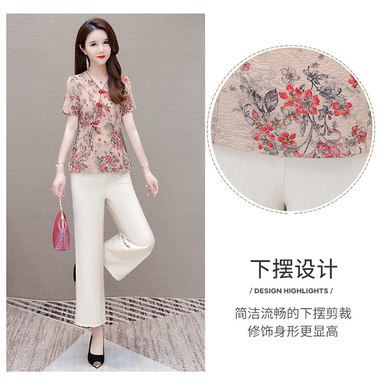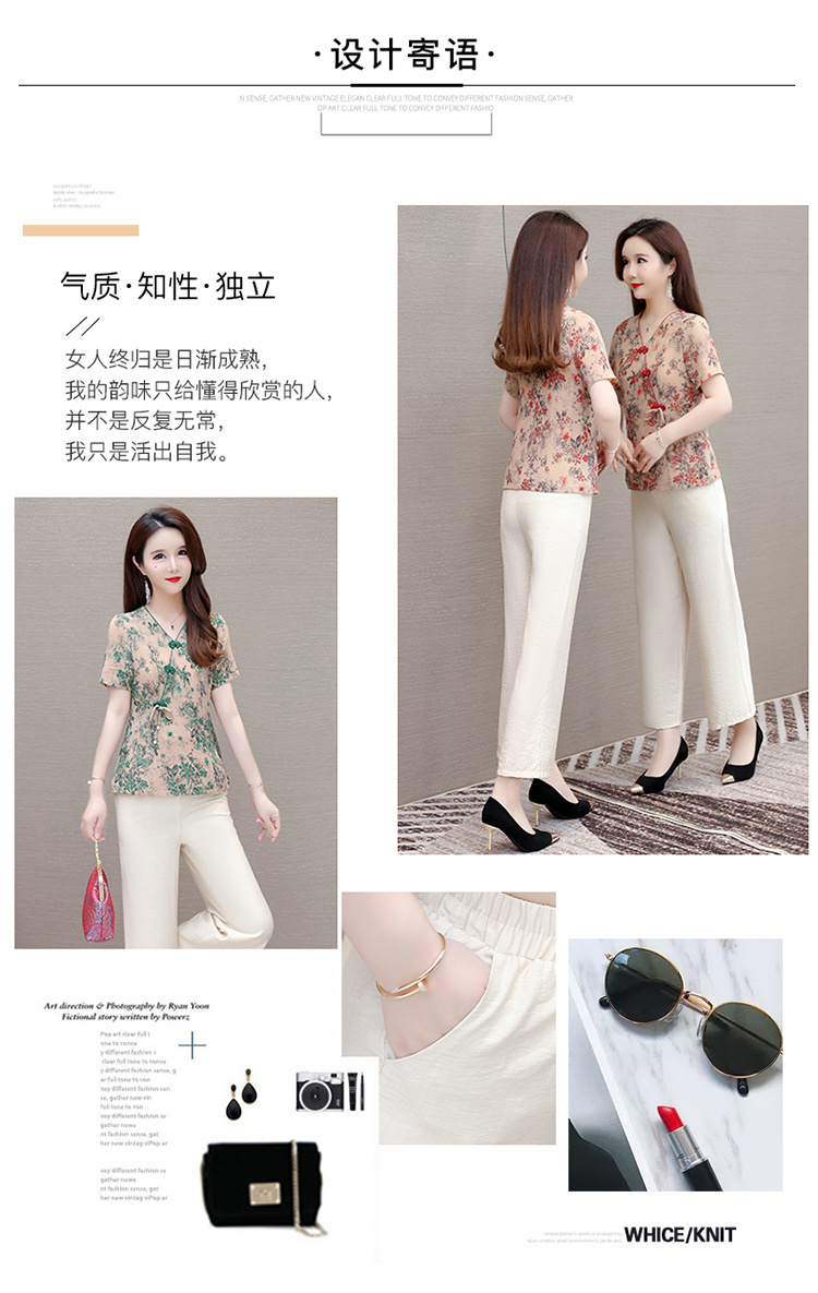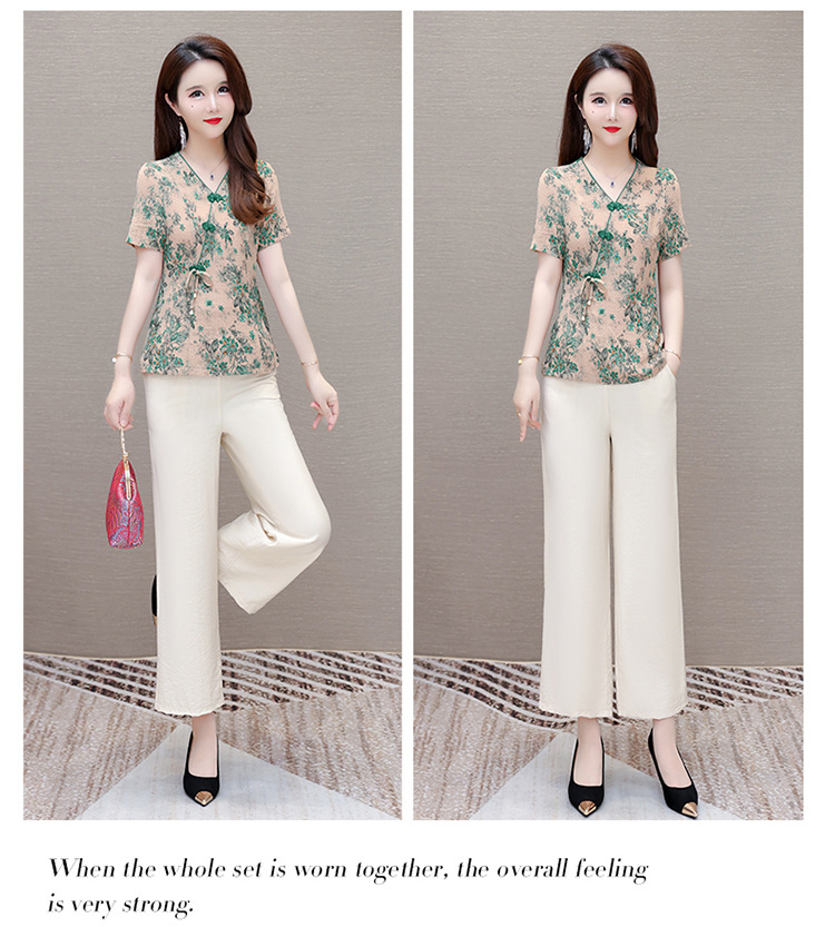 QYMKSY-CXJZ10-L夏款国风印花短袖时尚小衫简约宽松显瘦休闲阔腿裤大码两件套裤 商品图4